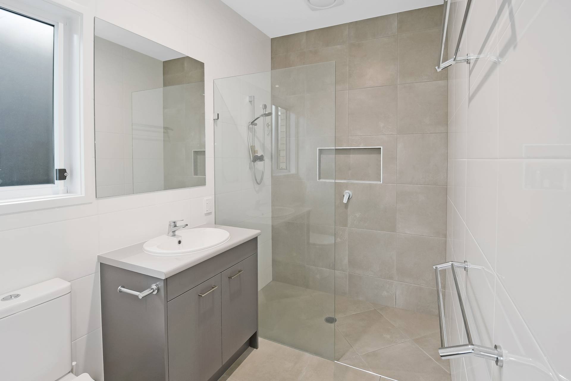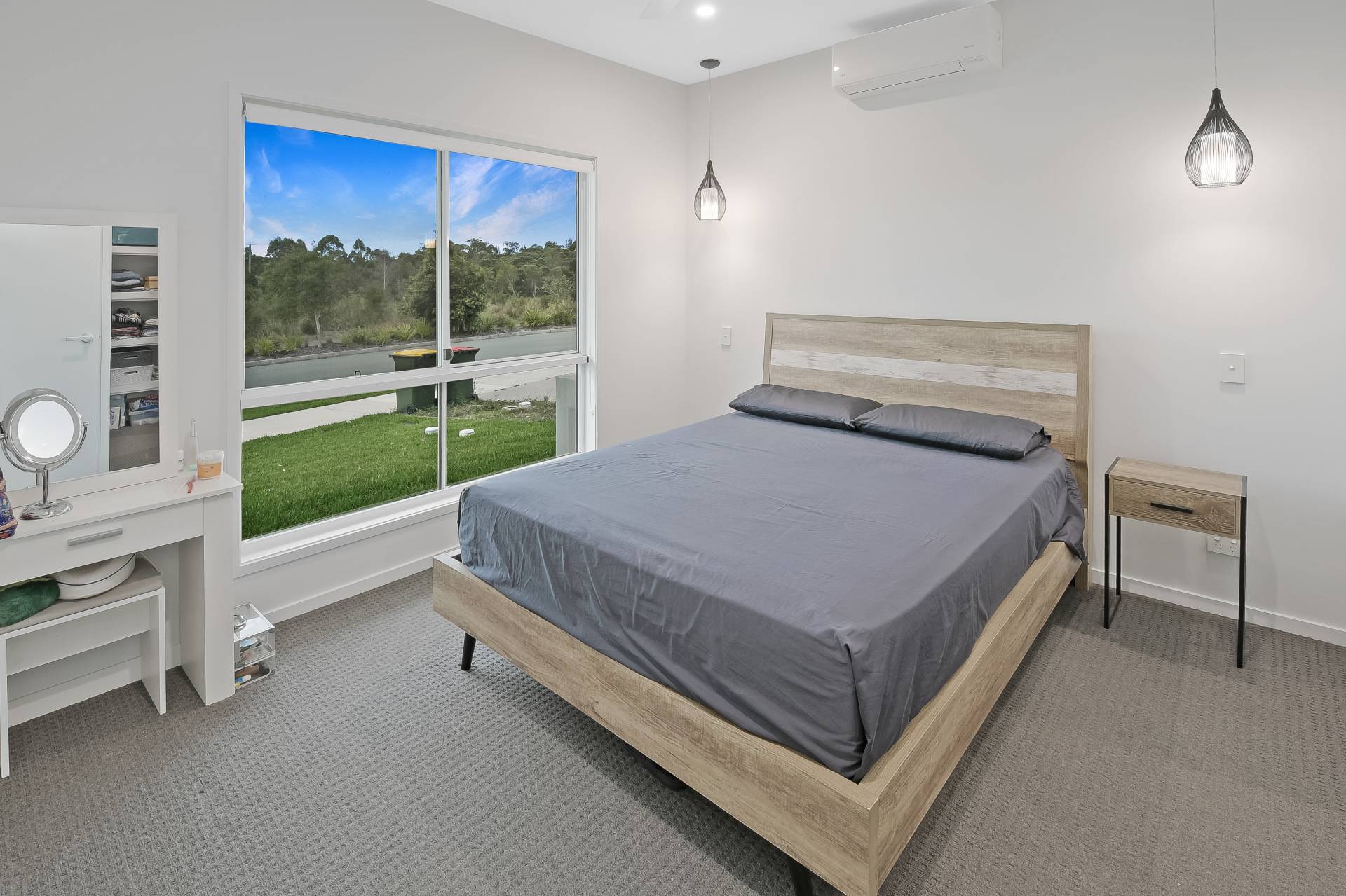 - Master bedroom incl air conditioning with a view of the conservation area through the tinted windows for that extra privacy; double pendant lights, large walk-in robe, and a stylish ensuite complete with huge walk-in shower, in-built niche and floor to ceiling tiles.