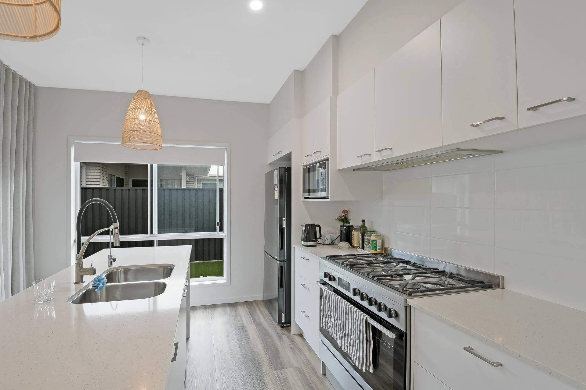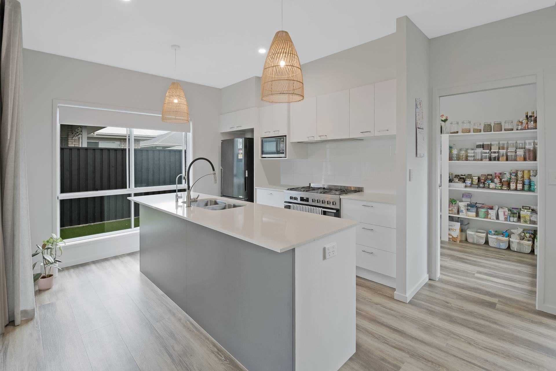 - The modern kitchen is equipped with stunning pendant lights, stone benchtops, a 900mm gas cooktop, water filter, fridge tap and an expansive walk-in pantry meeting the standards of discerning home chefs.