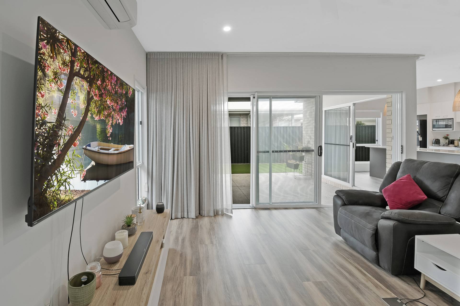 - Open-plan living and dining area out to the alfresco provides an ideal space for relaxation and entertainment, bathed in natural light throughout the entire home but cool in those summer months with its south-facing aspect.