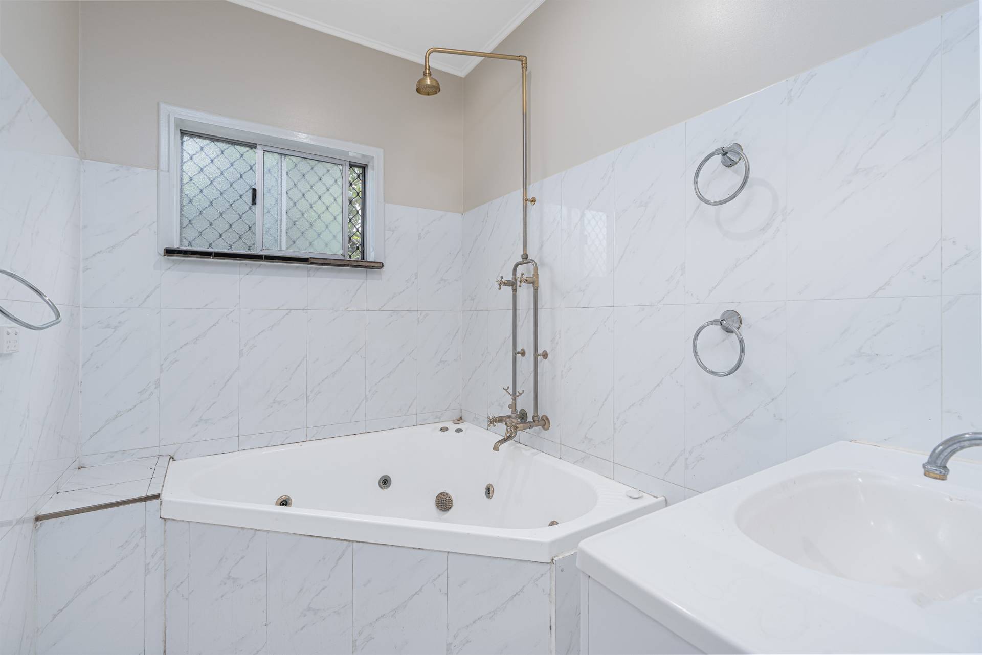 -Bathroom with luxury spa bath