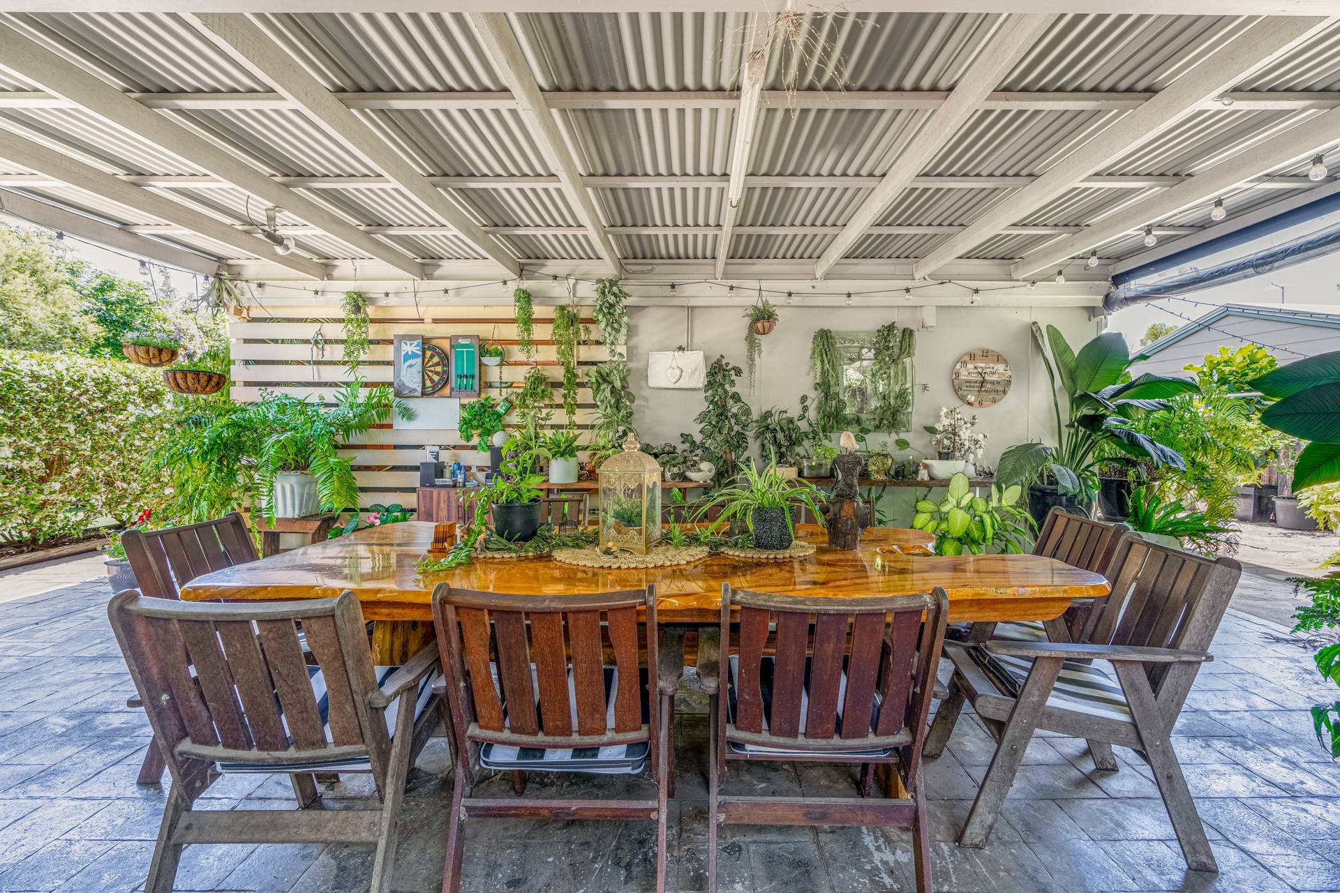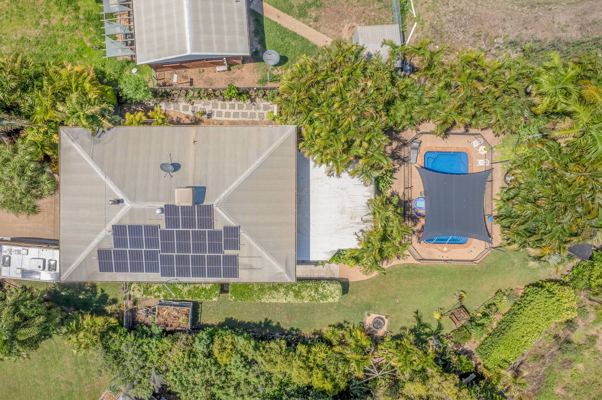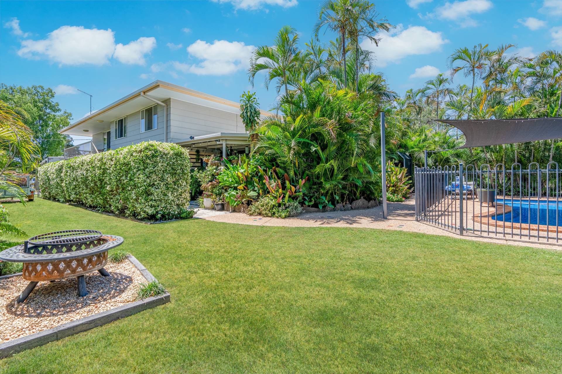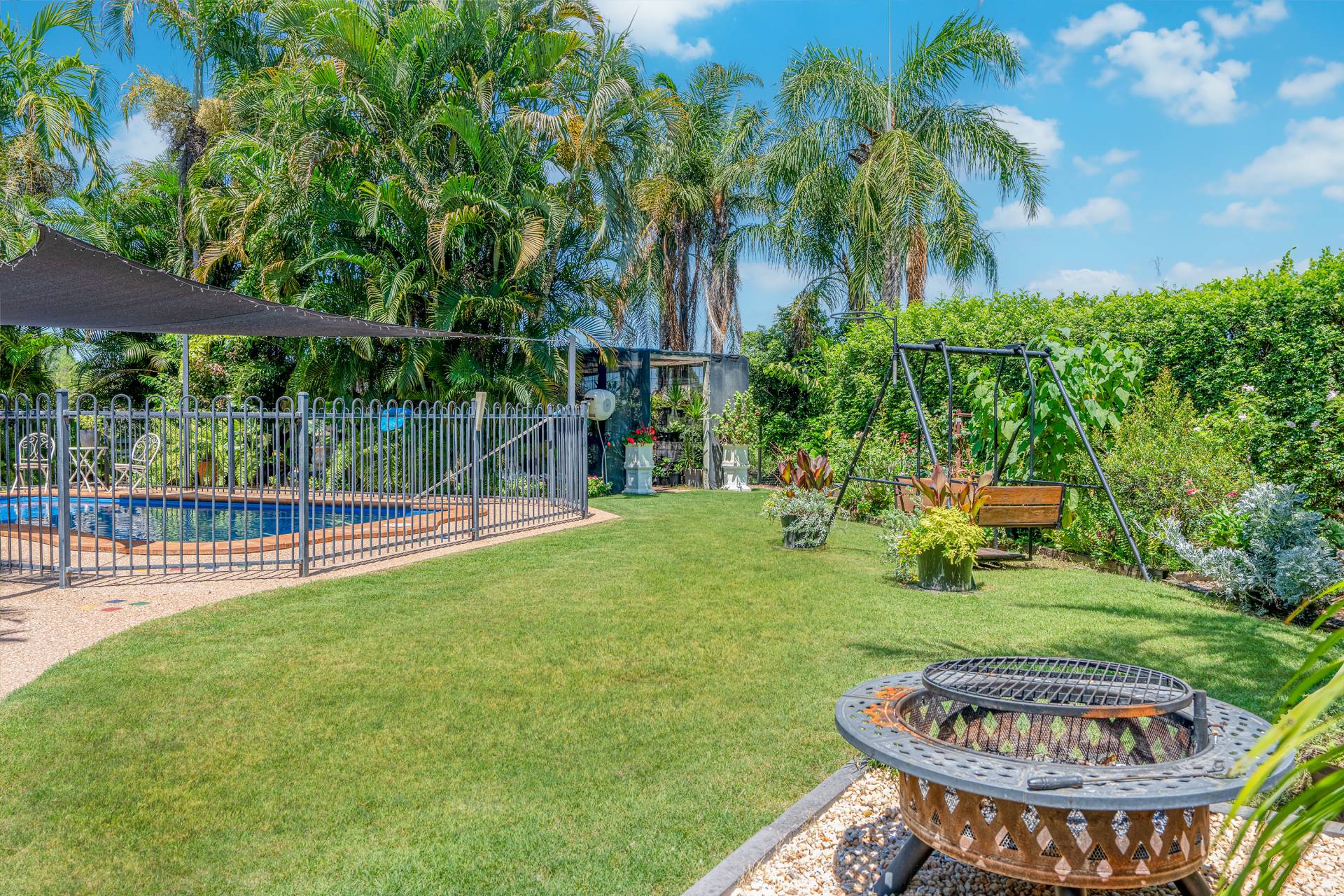 - Tranquil outdoor entertainment area overlooking the sparkling in-ground saltwater swimming pool