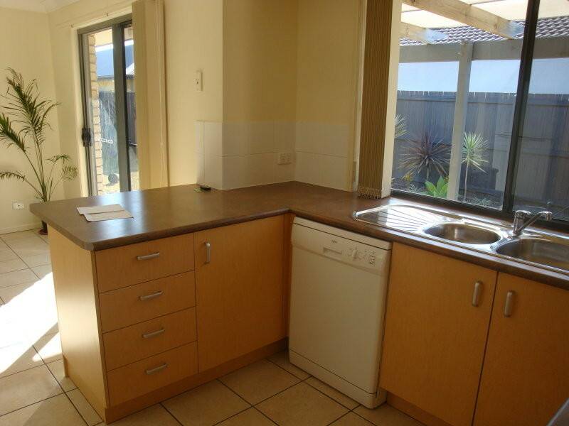 * Kitchen with lots of cupboard space, a small breakfast bar, a dishwasher and room for a large fridge