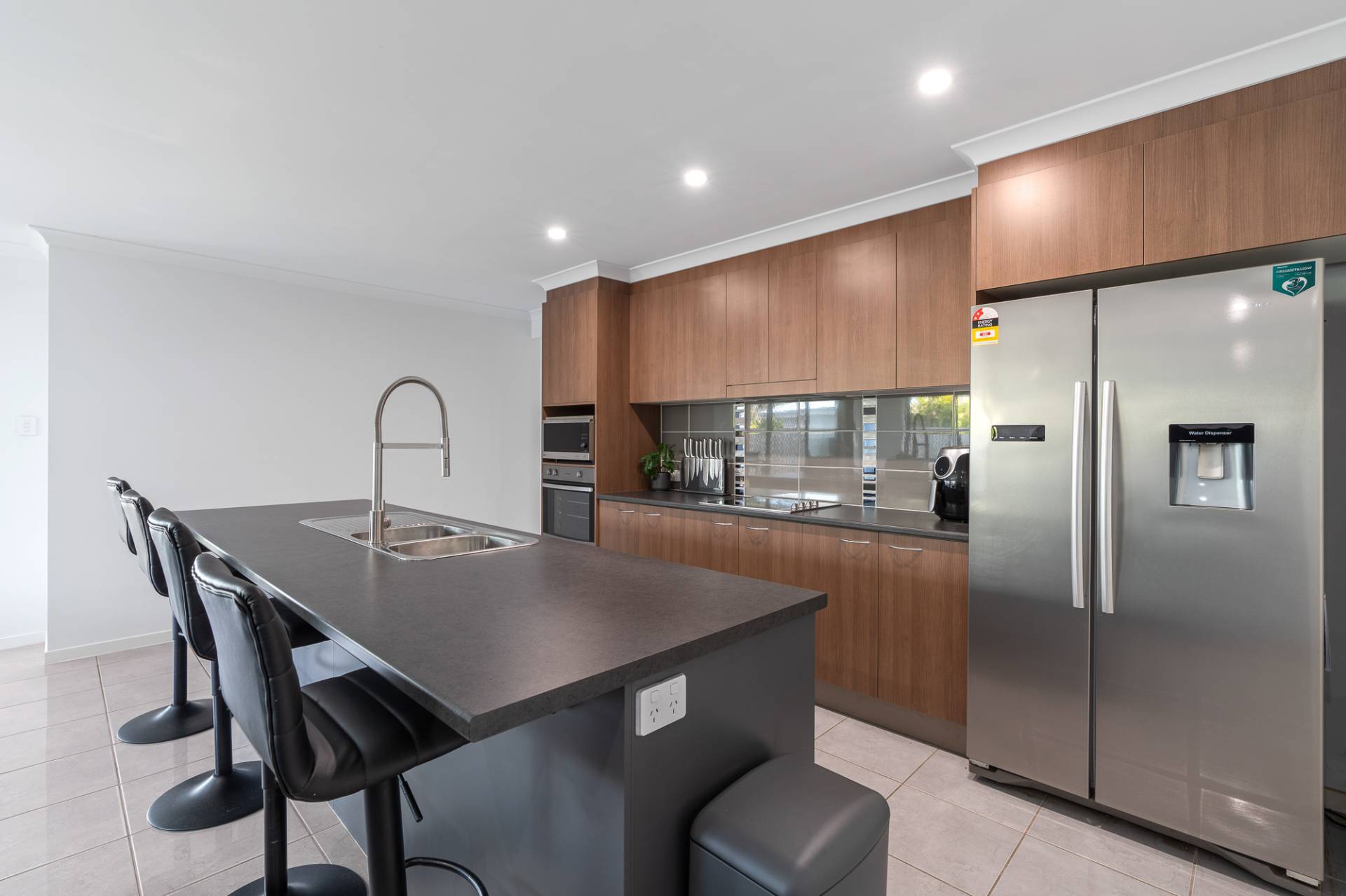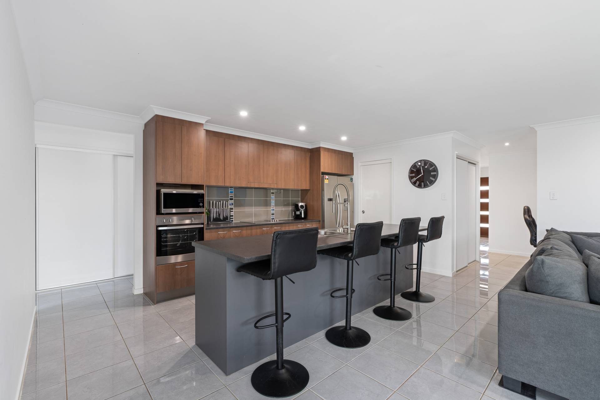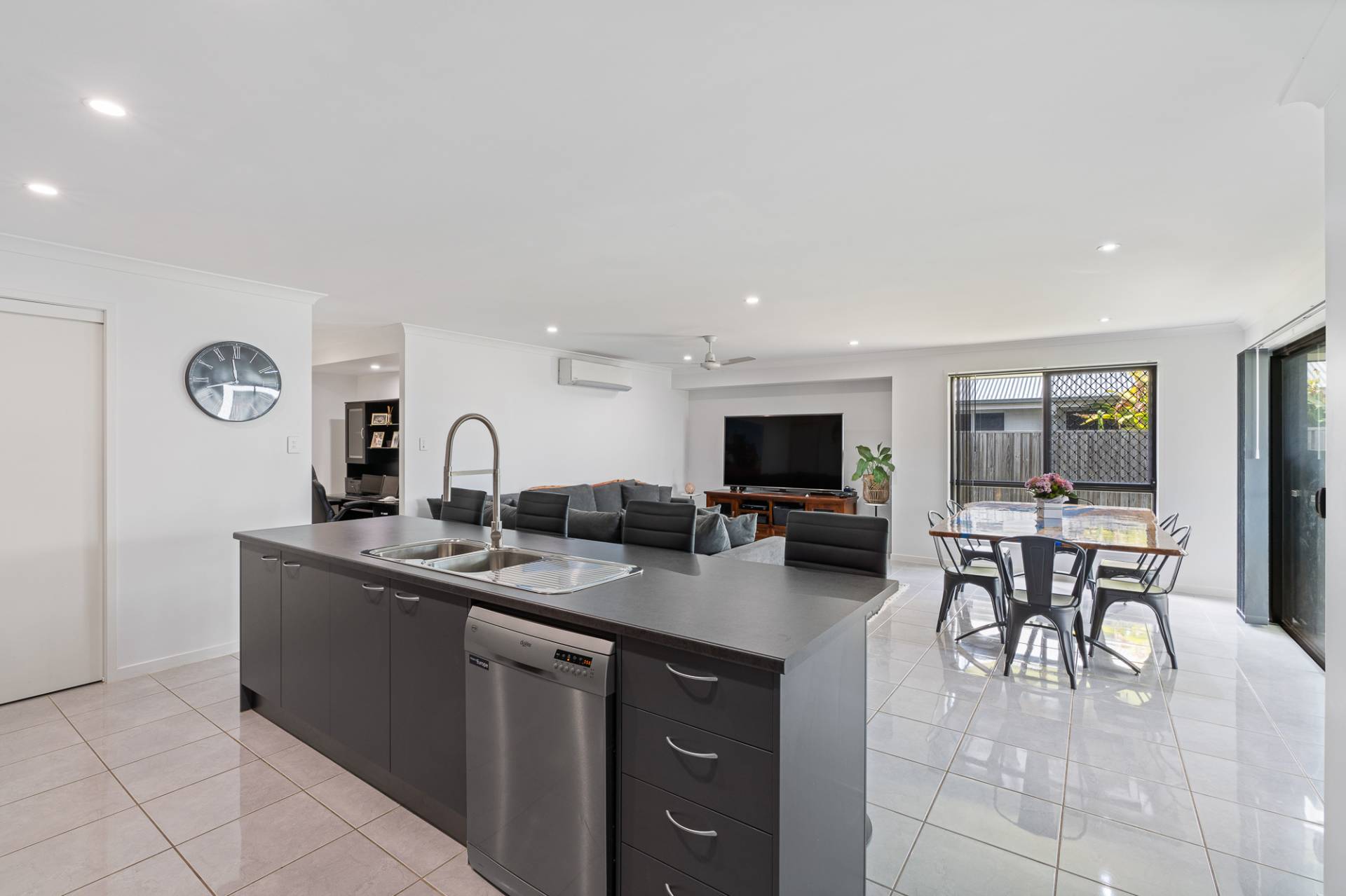 To complete the kitchen, it offers electric cooking, a dishwasher, plenty of bench and cupboard space, and a walk in pantry.