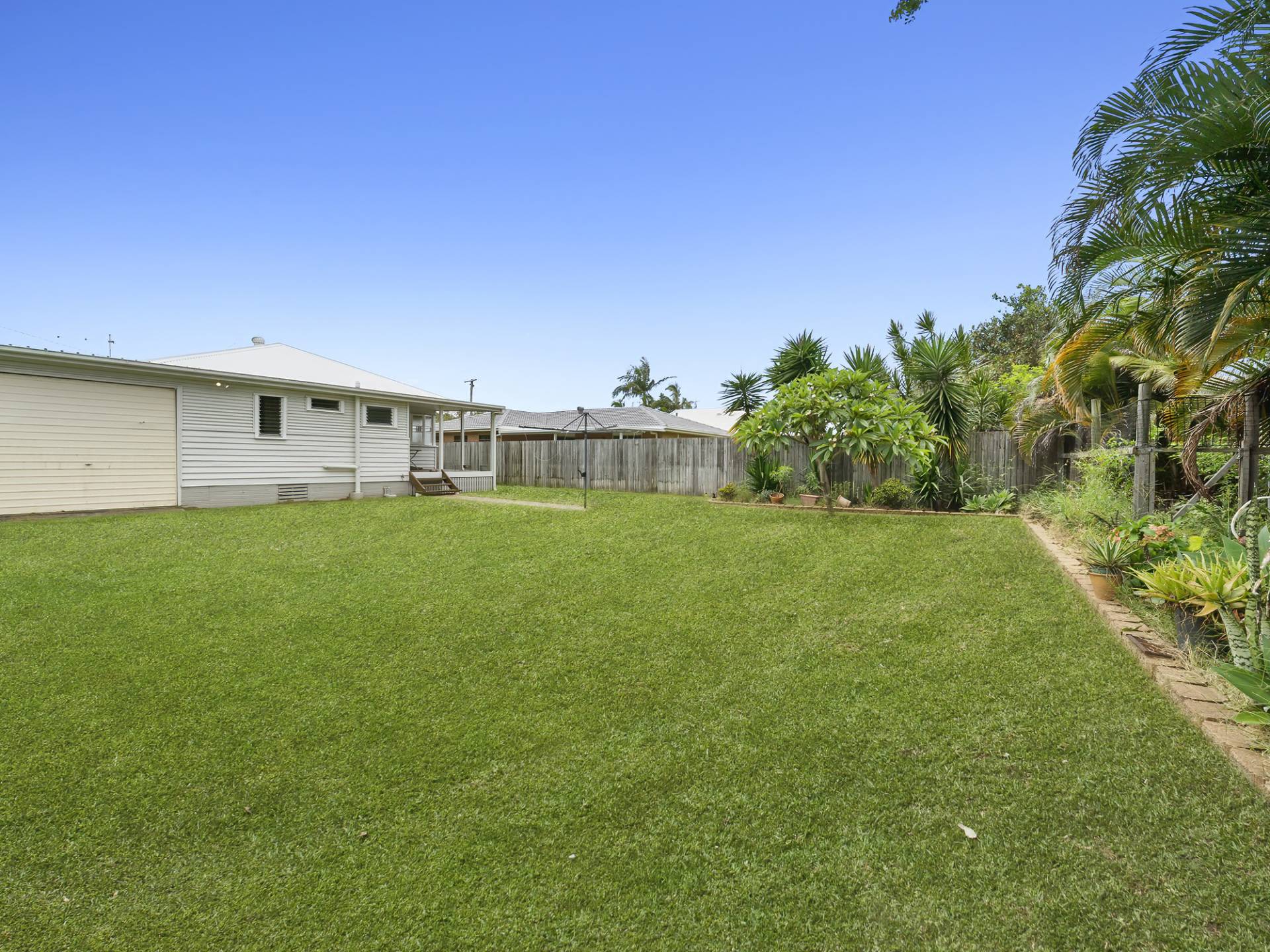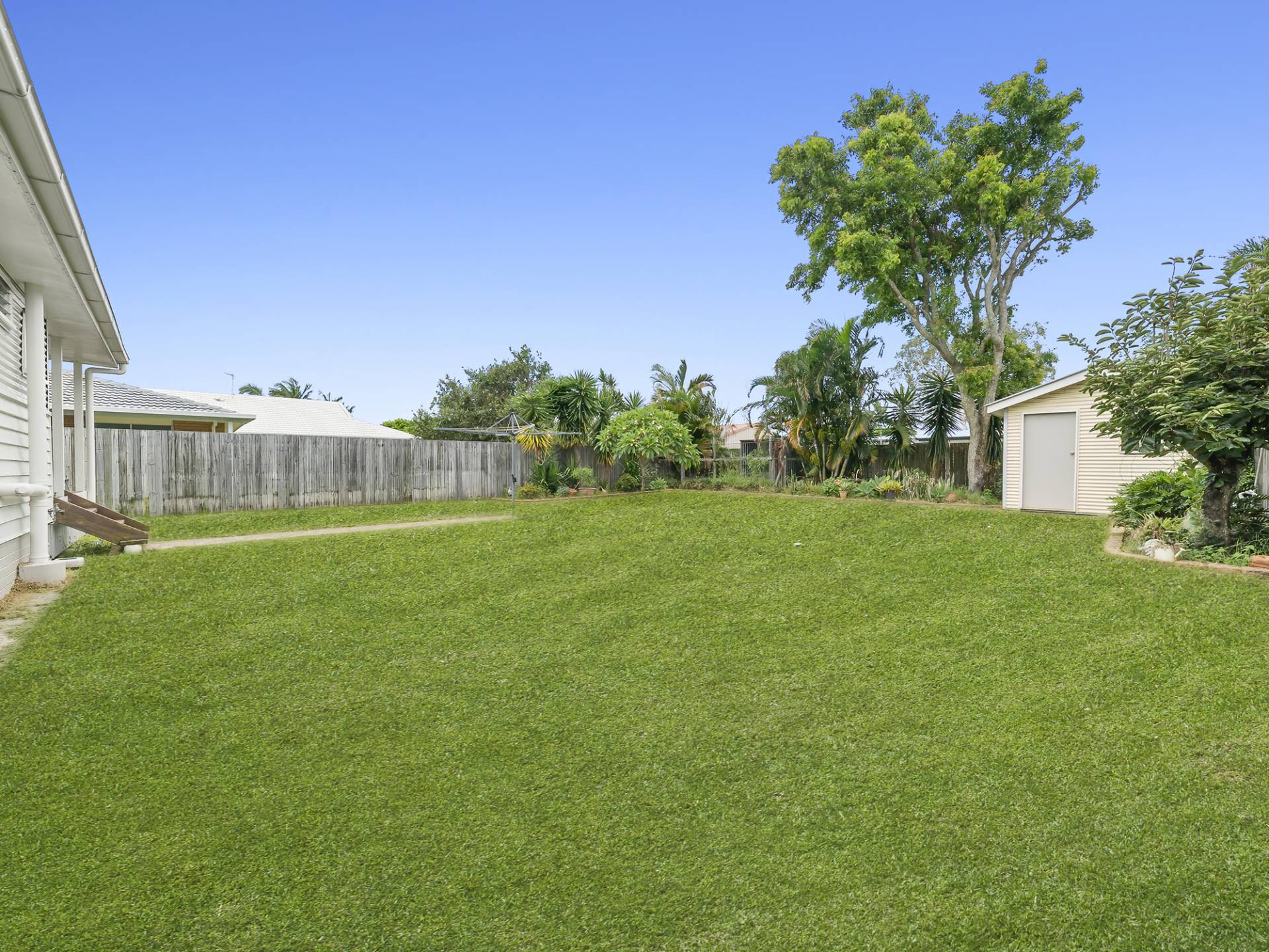 Plenty of room to place a pool in the fenced backyard
