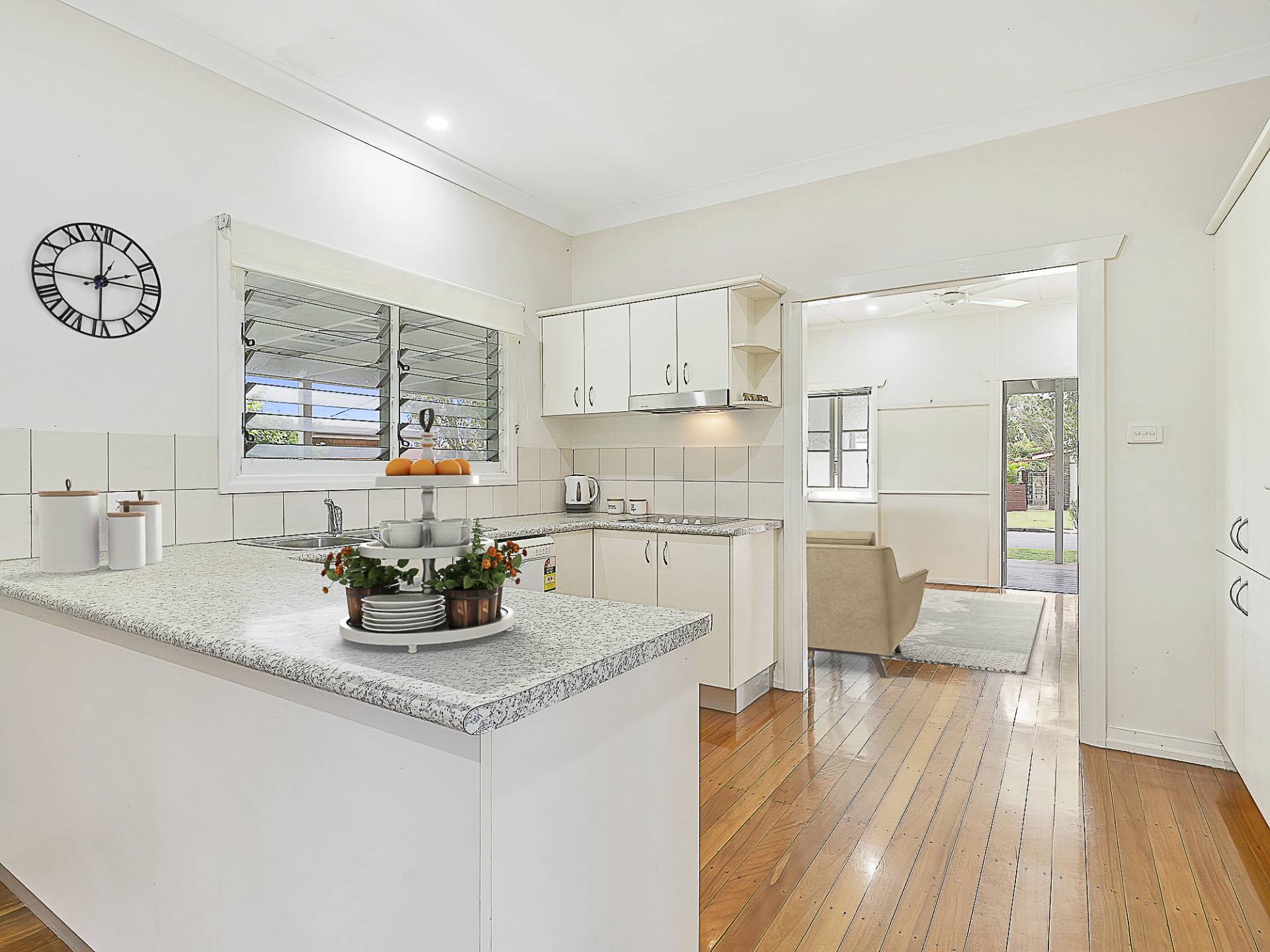 Kitchen is centrally located and has a dishwasher, plenty of bench space and storage cupboards