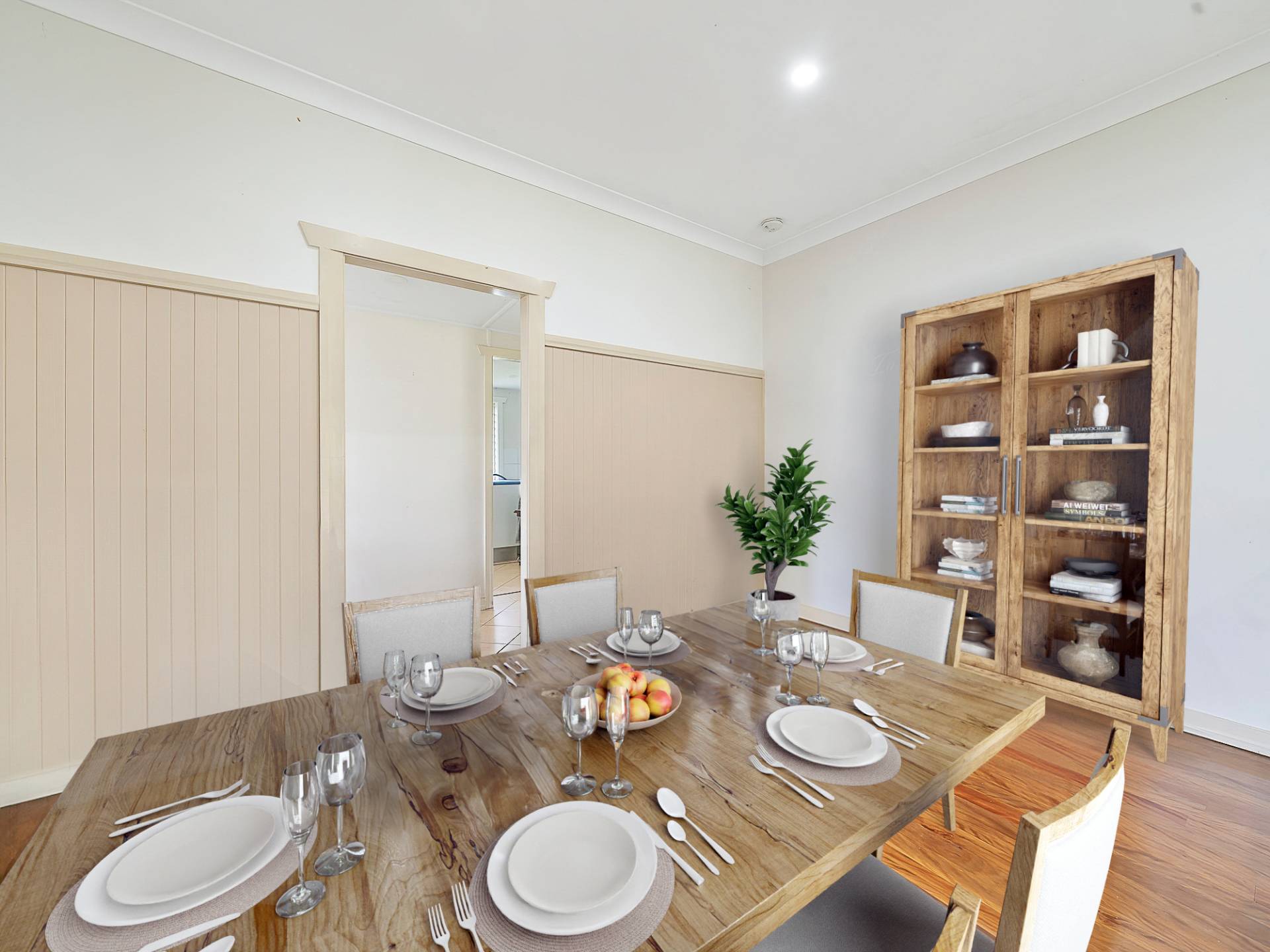 Combined kitchen and dining room with feature VJ walls