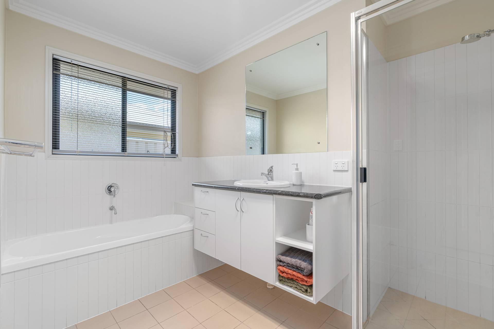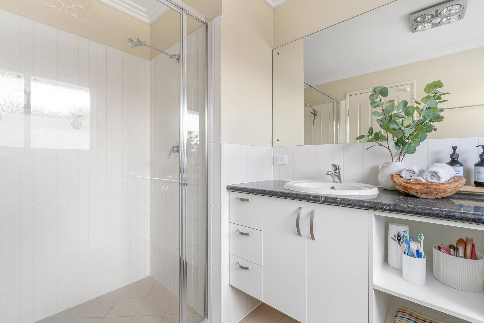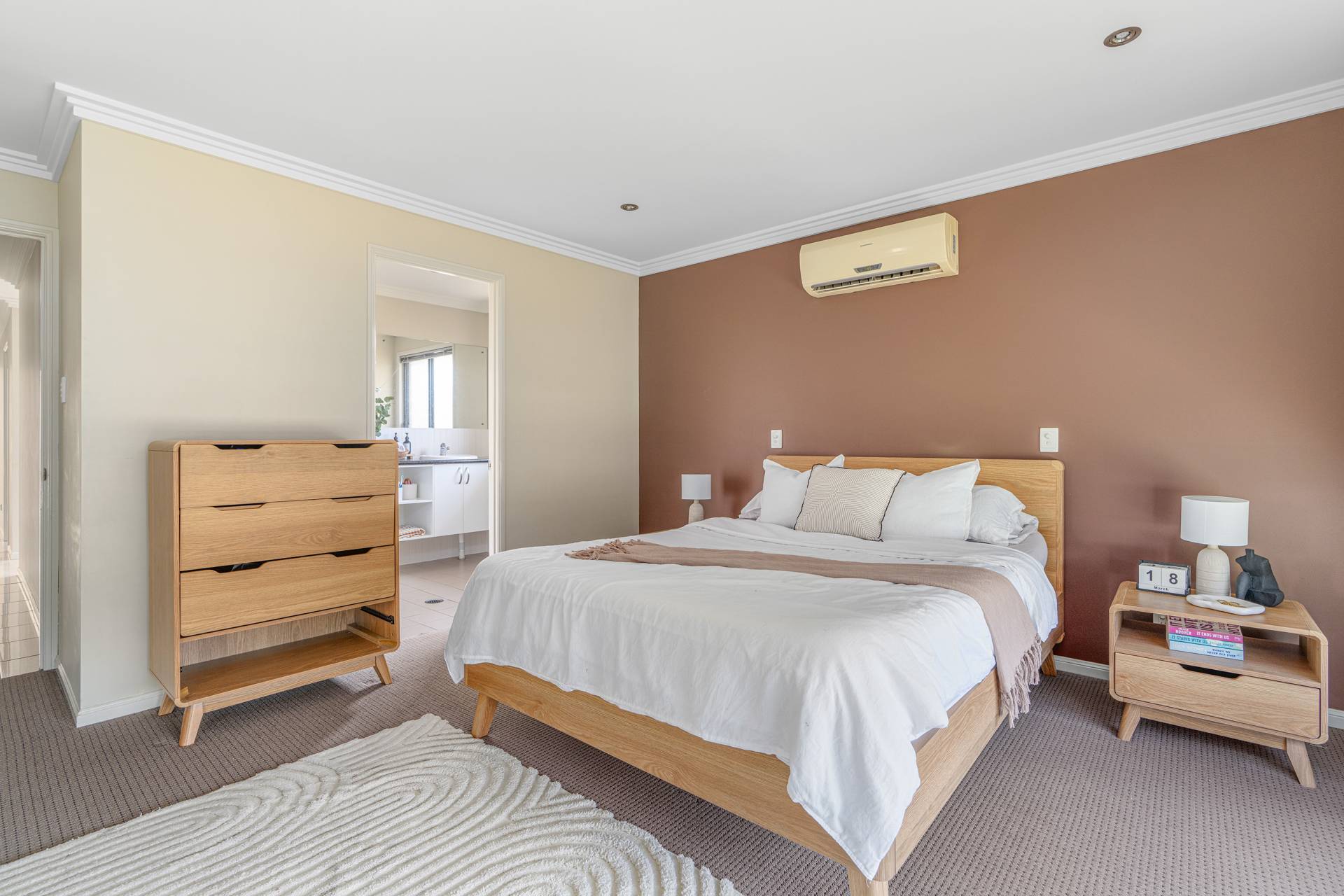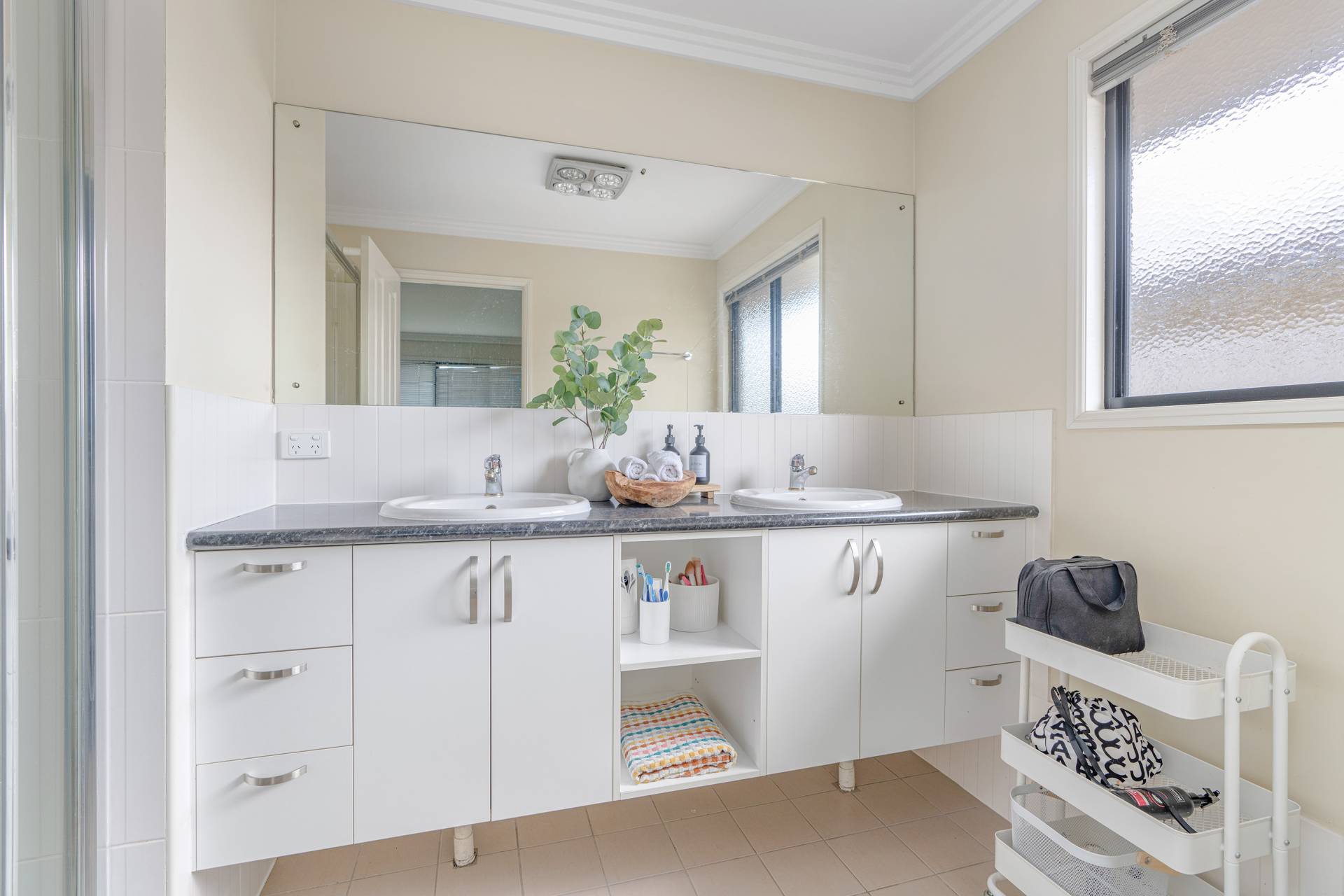 - Master bedroom with split system air conditioning, a large ensuite with his and hers basins