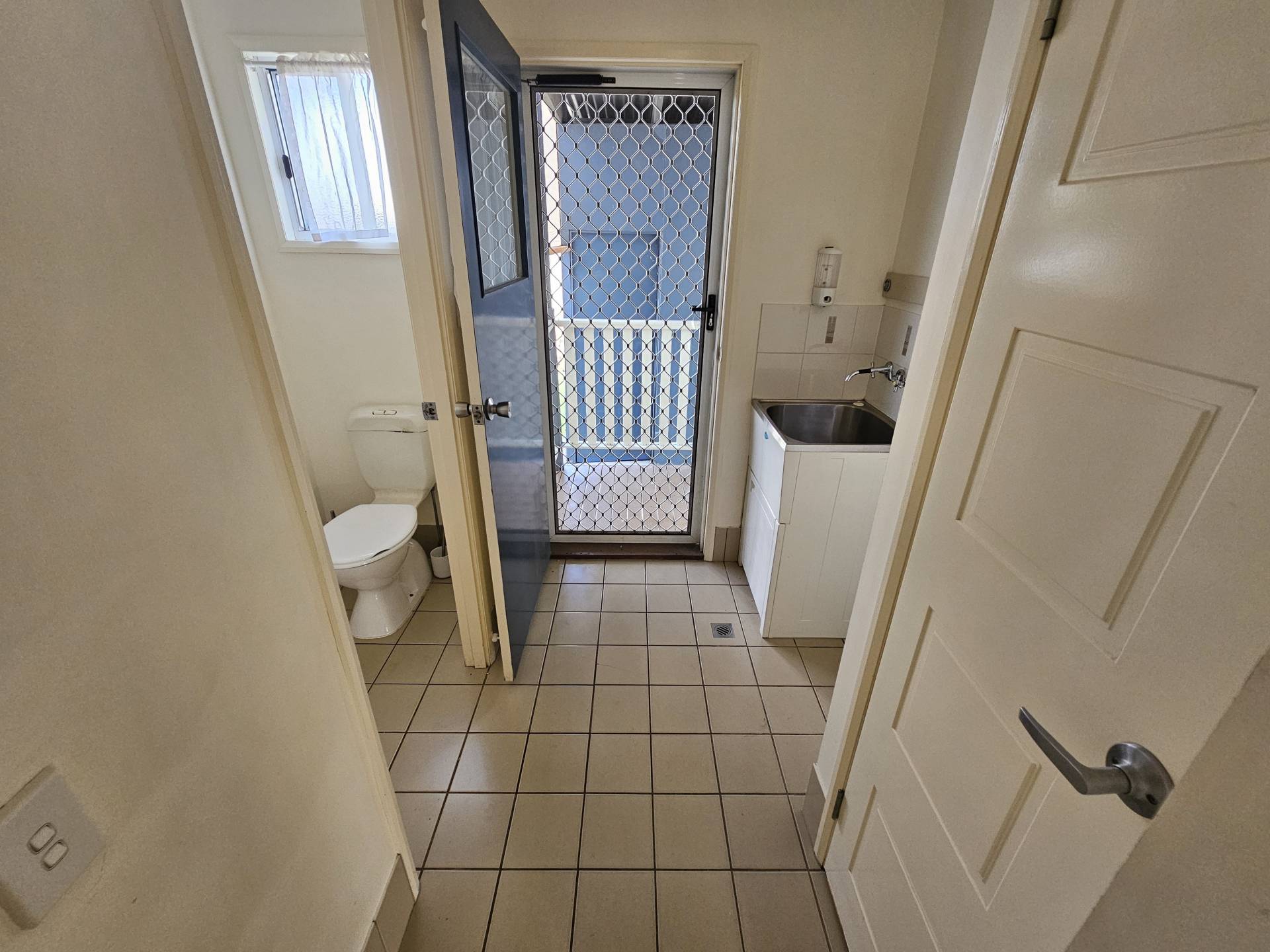 -Separate laundry area with storage cupboard