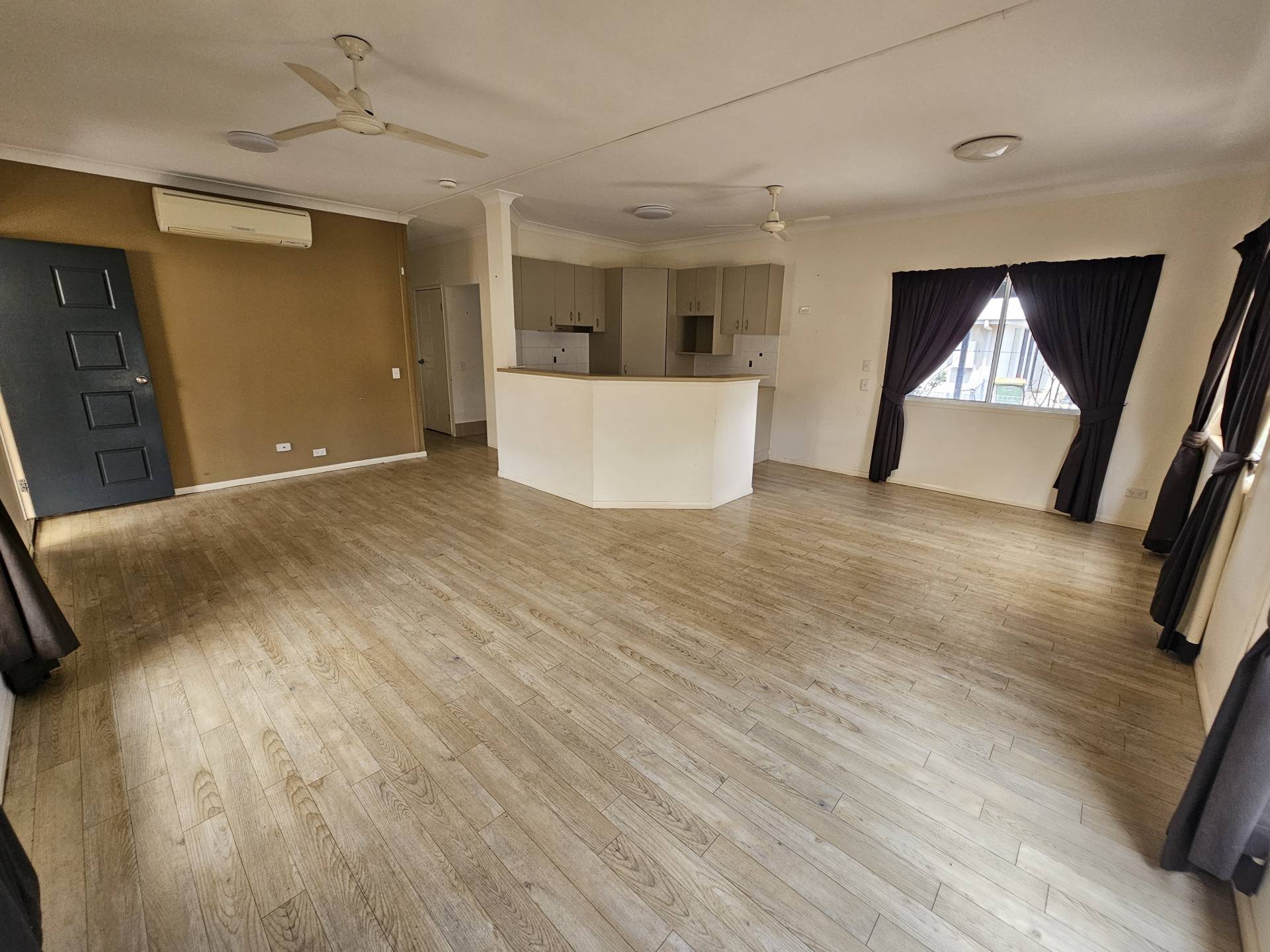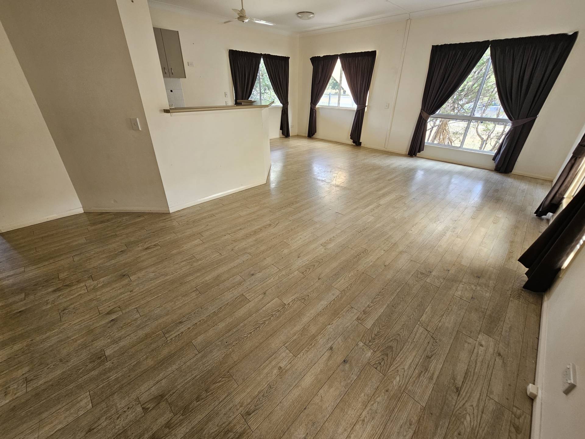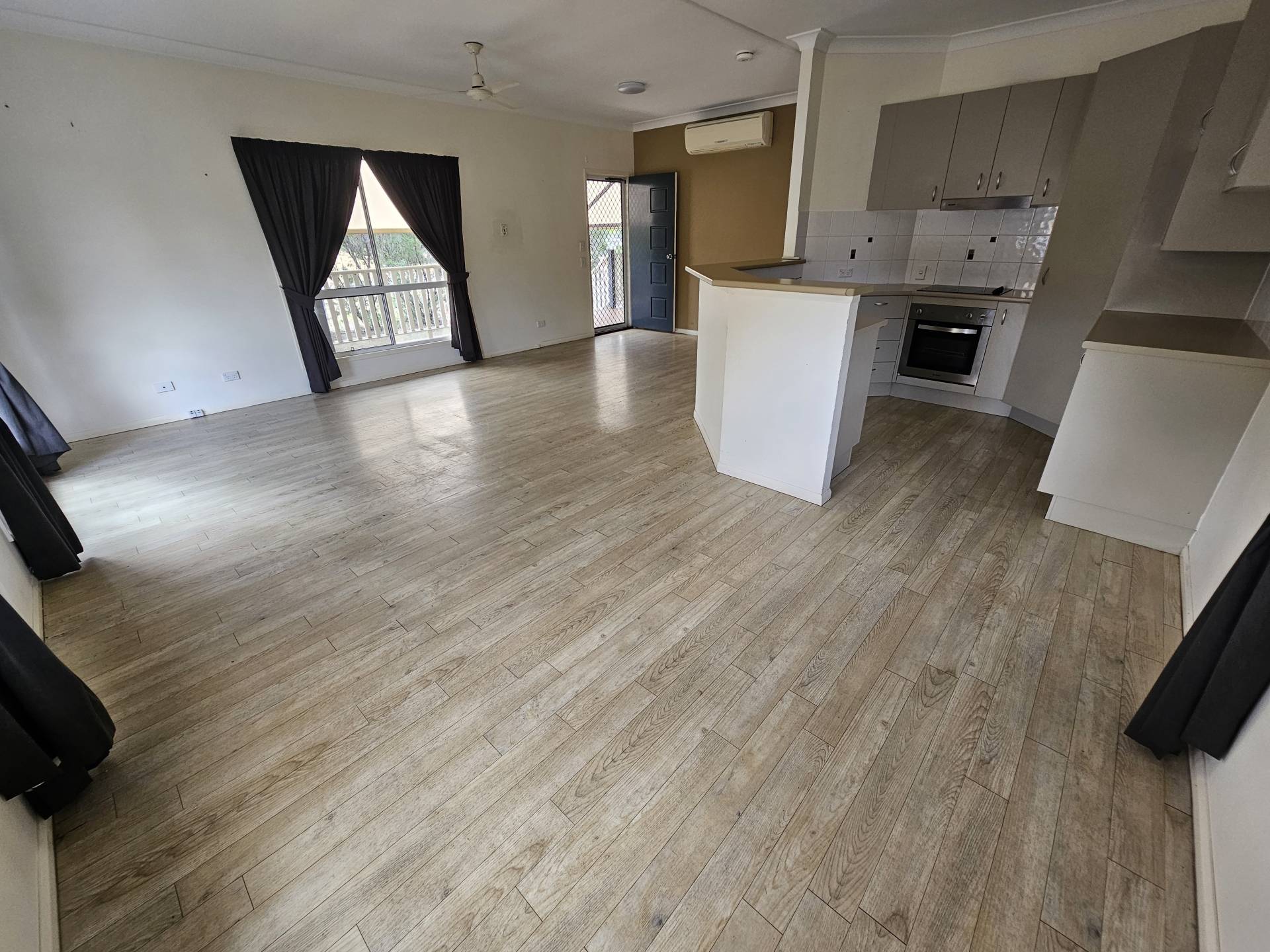 -Spacious open plan Kitchen/Meals/Living area with timber look vinyl flooring