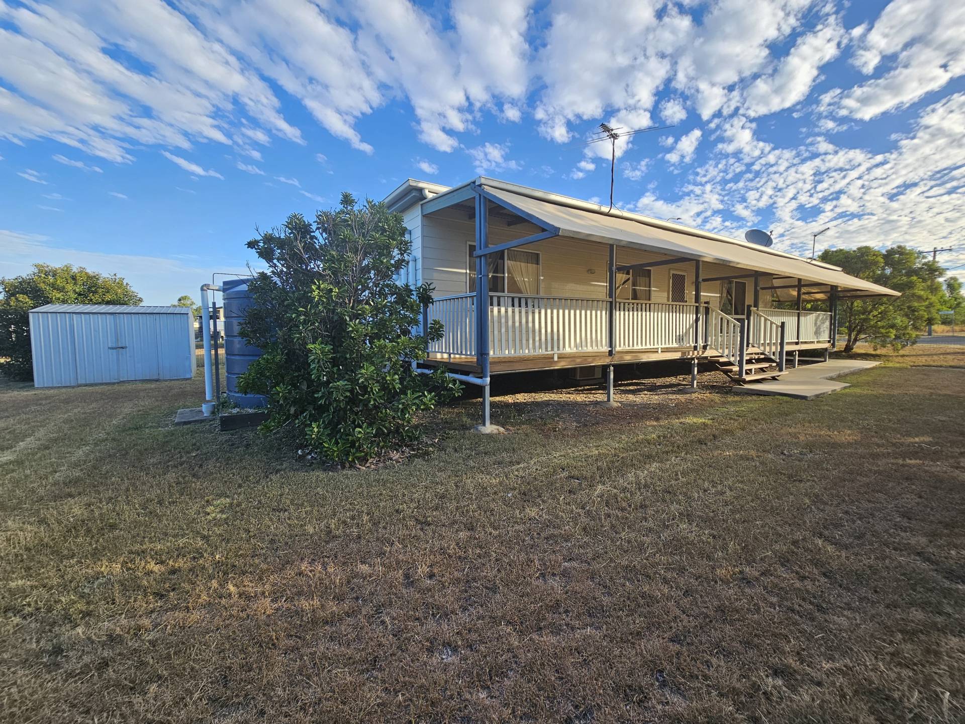 Very neat and tidy prefab lowset kit family home in the lovely rural town of Capella, hardiplank exterior and sitting on adjustable steel stumps, all within a fully fenced 719 m2 allotment.