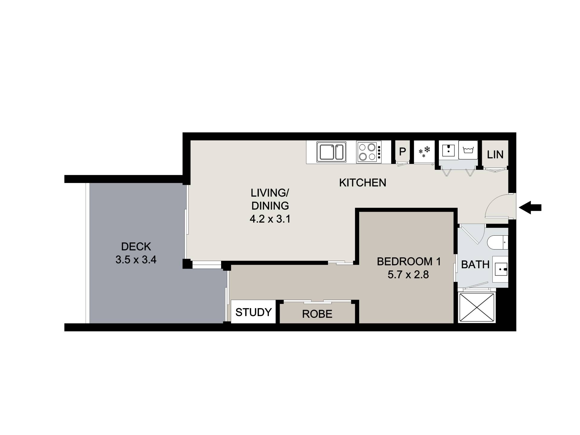 • One large bedroom with built in robes, direct access to the bathroom and balcony