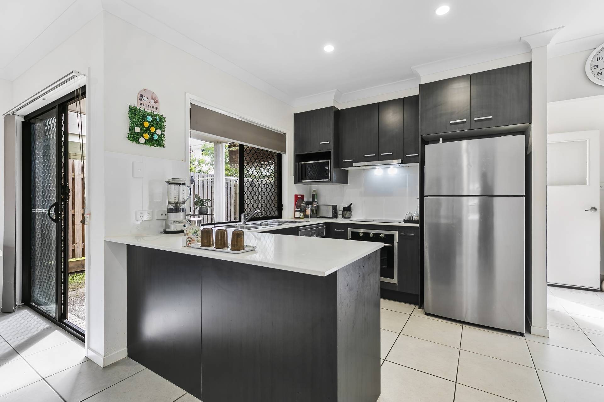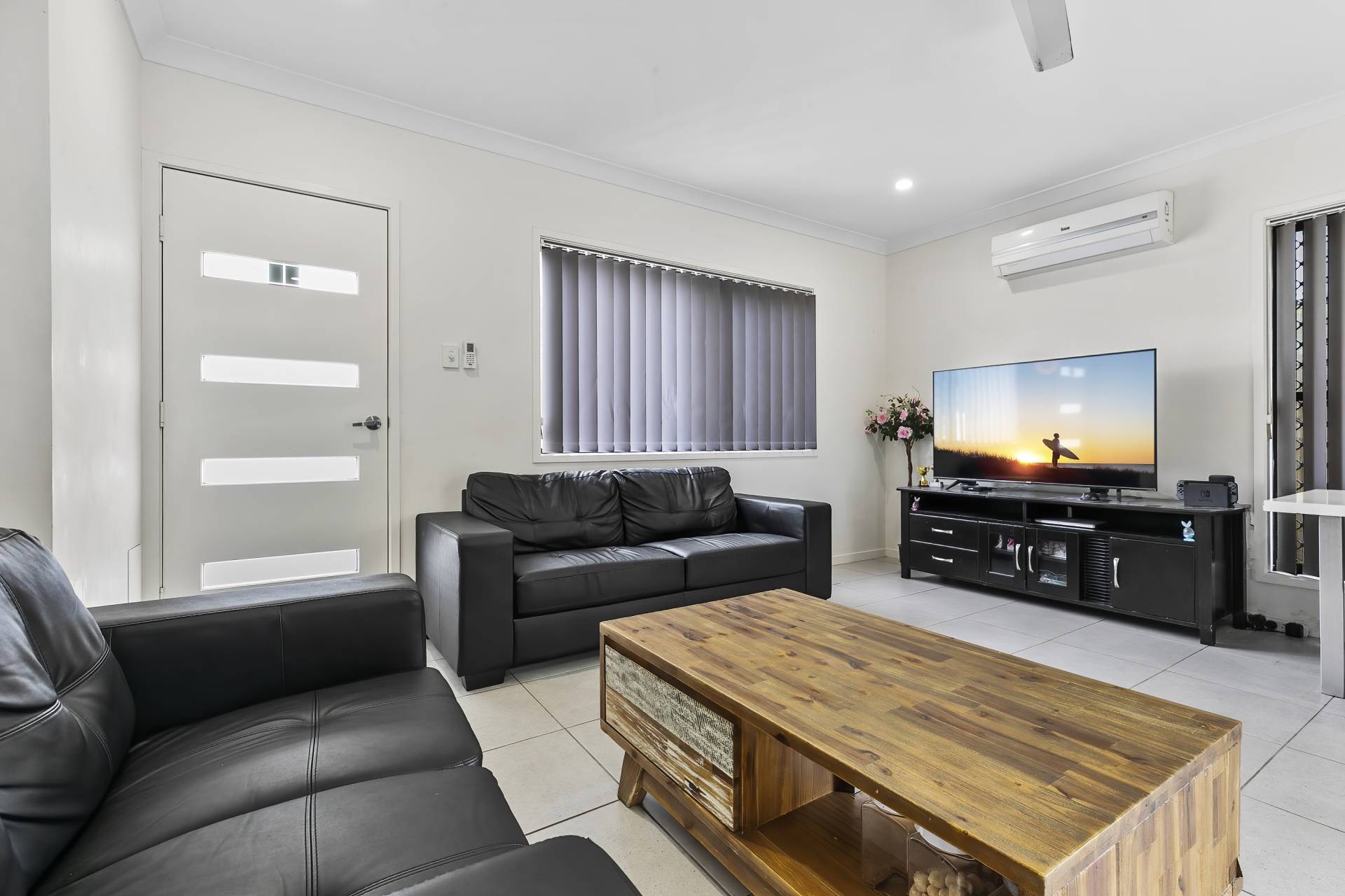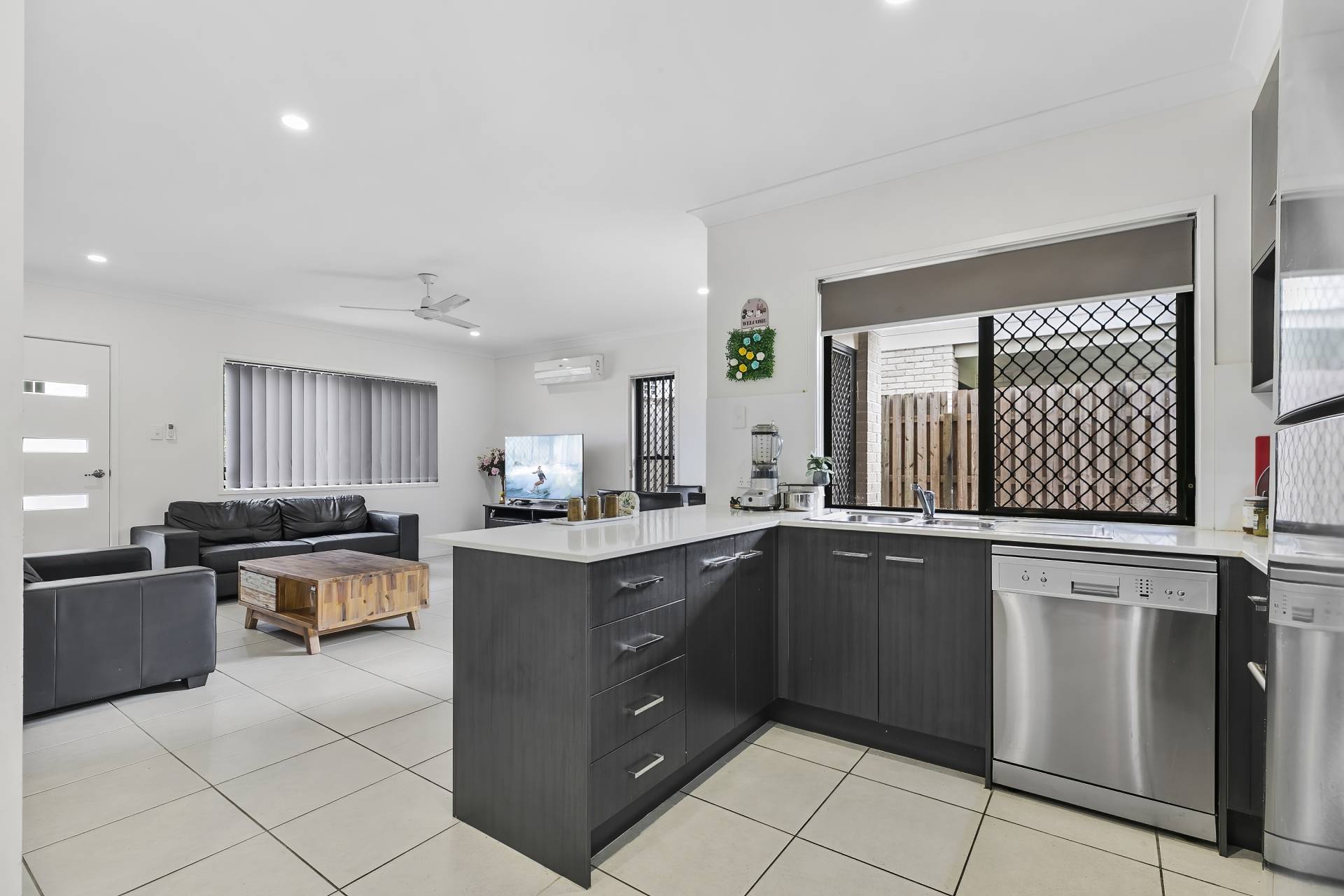 With air-conditioning to the open plan living area, flowing into the bright and modern kitchen complete with stainless steel electric appliances inclusive of a dishwasher, a walk-in pantry/come under stair storage and a breakfast bar for casual meals, the unit offers ample space and a well designed layout.