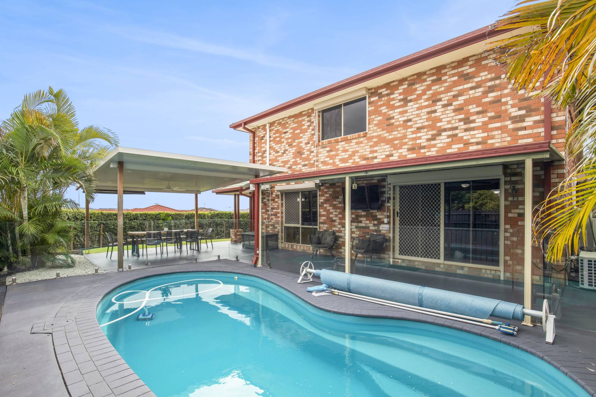 The heart of the home is the spacious family kitchen, serving up a functional layout, loads of storage, and a breakfast bar for those morning chats over coffee. When it's time to unwind, kick back in the open plan living and dining area or head outside to dine by the pool.