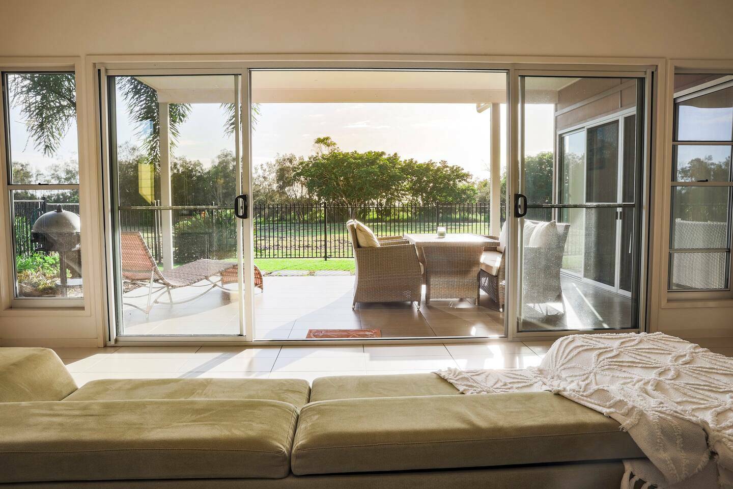 ·                     The living room features stylish furnishings and a seamless connection to the outdoor patio.