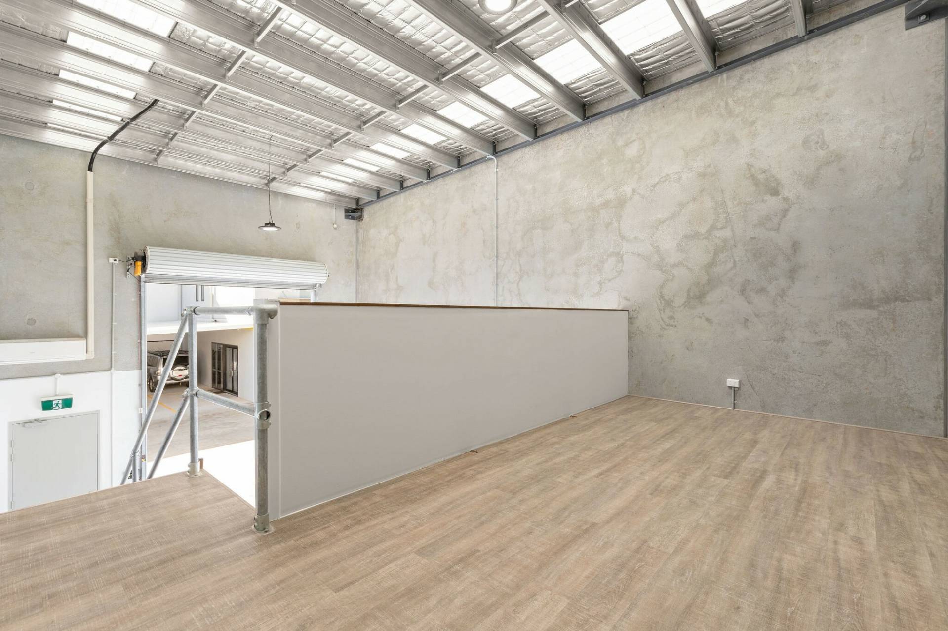 - Access warehouse via double width container height electric roller door