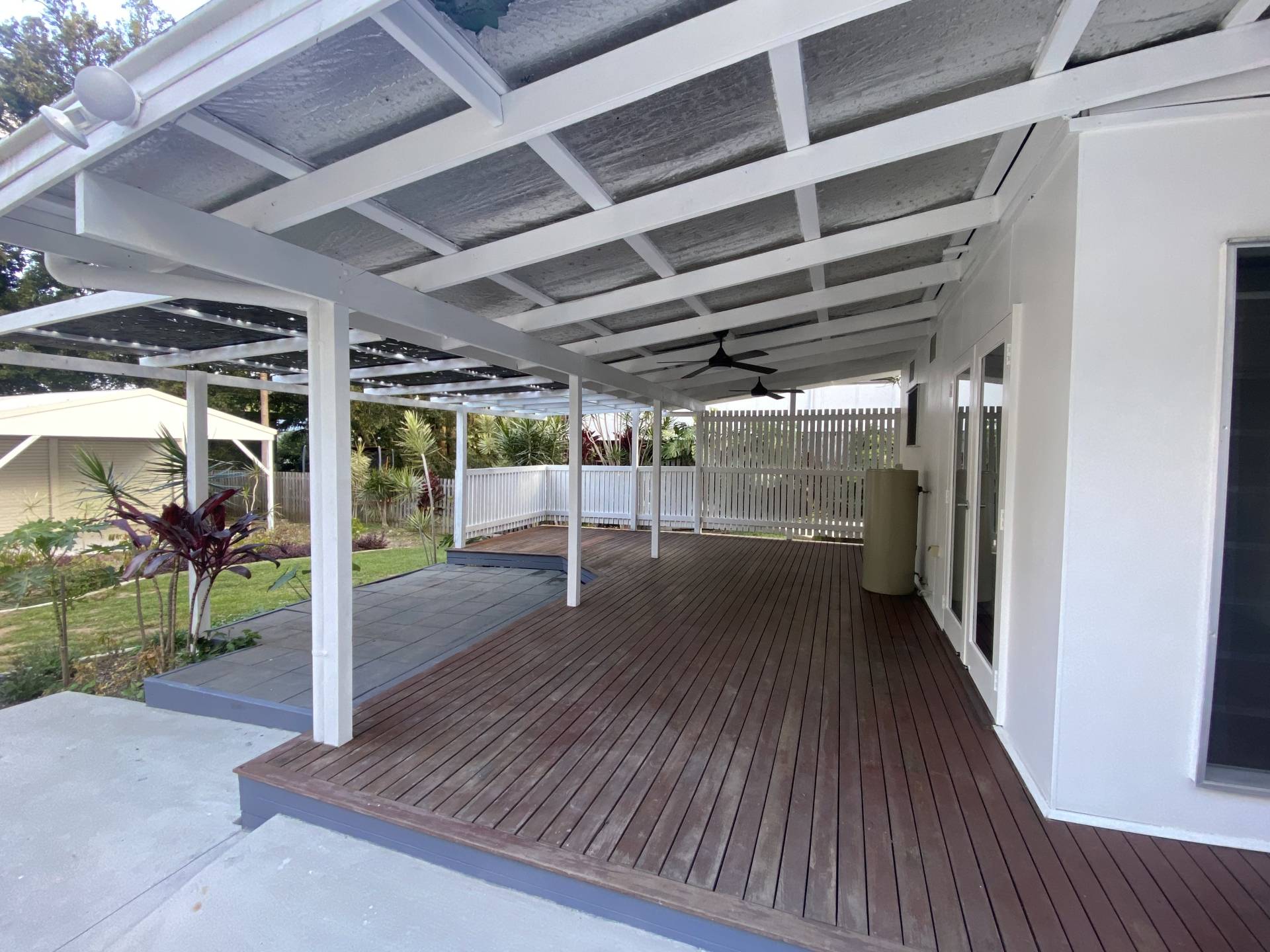 The unit itself comprises 2 bedrooms plus a study with built-in robes and ceiling fans, a two-way bathroom, well-appointed kitchen which overlfows out onto the large undercover back deck.