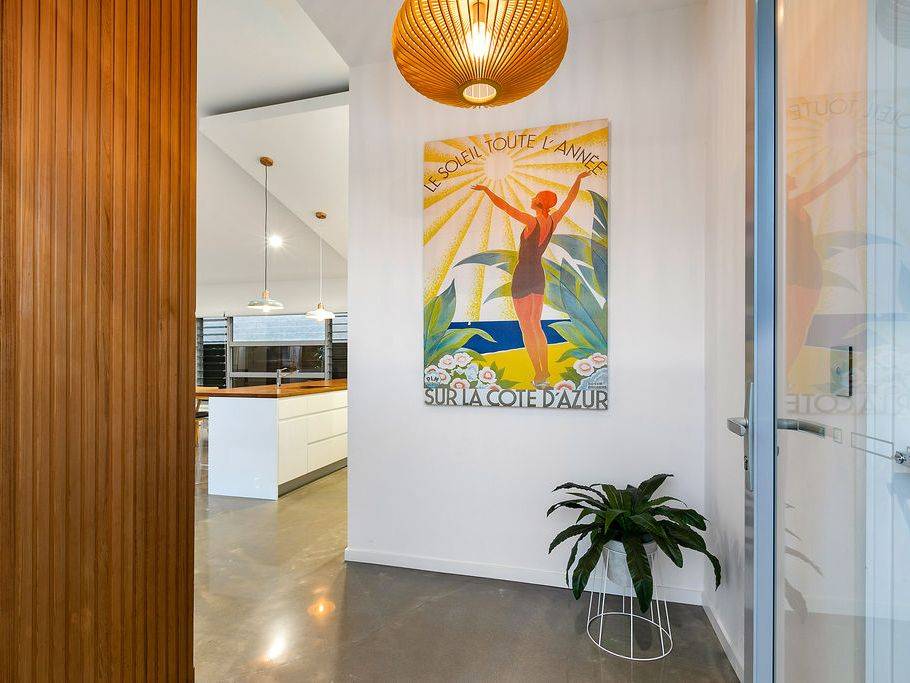 With form and functionality to match, the residence boasts an elevated position and captures the cooling coastal breeze year round. Clever use of louvre and fixed glass windows ensure an outlook from every area of the living quarters, whether it is the kitchen, dining area or media room.
