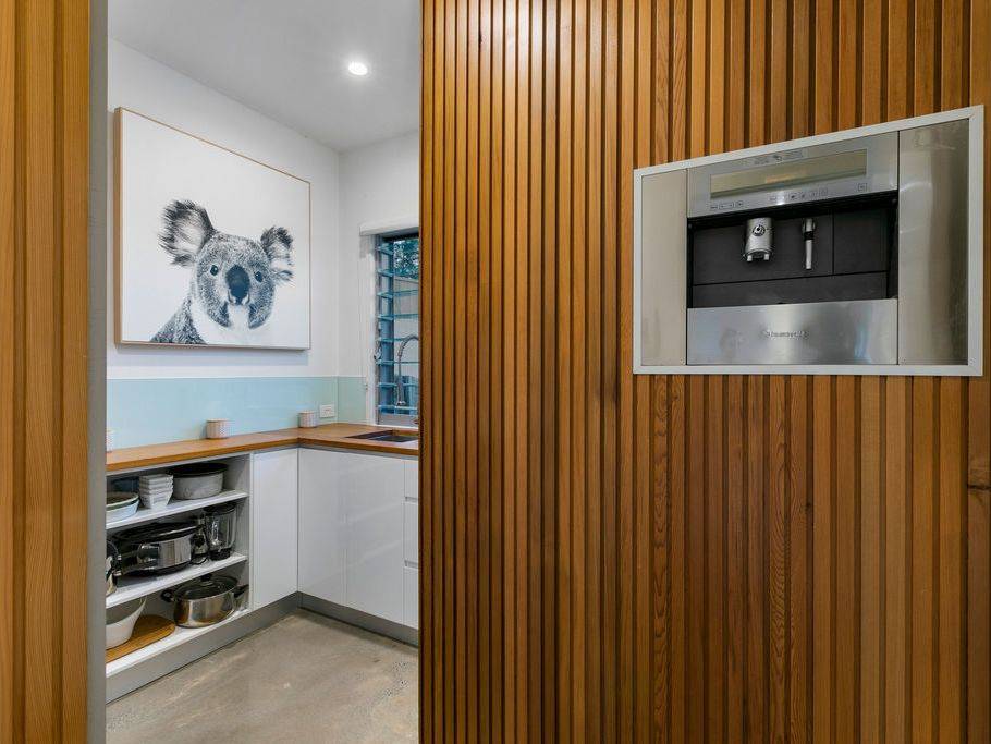 The timeless modern kitchen is the heart and soul of the home featuring stunning 2 pac cupboards, smeg appliances and a blackbutt timber bench. The quality continues in the butler’s pantry with an integrated Artison coffee machine, microwave / convection oven, timber feature wall and plenty of storage for all the pantry essentials. The position of the kitchen also ensures the chef of the family is never far from the action and gives the opportunity to supervise children in the pool while cooking up a storm.