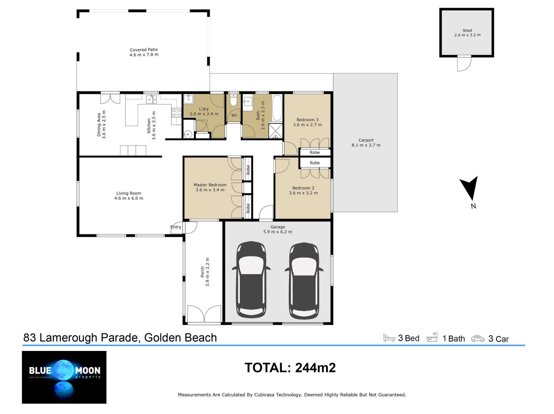 ·        Double lock up garage with internal access to the home plus a carport