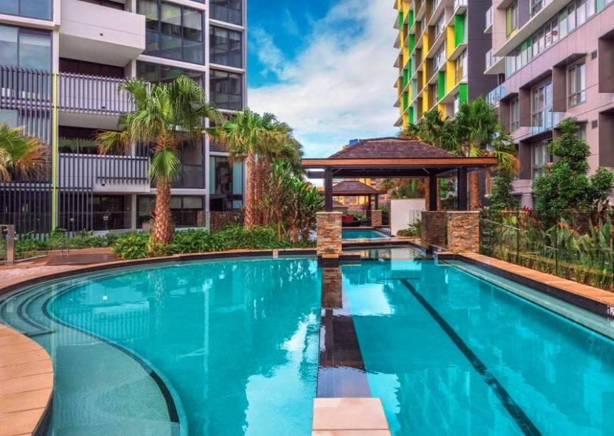 - Building features, beach lagoon pool, private rooftop area with city views, pool table with lounge area, large gym and Yoga lawn.