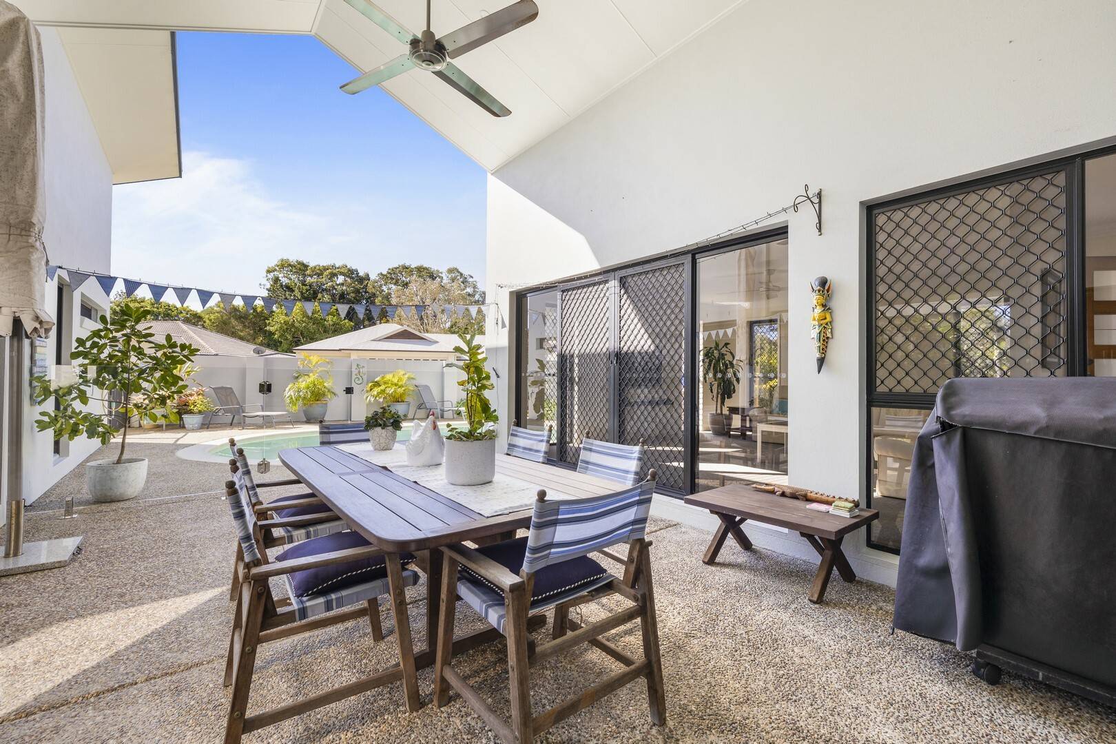 Families who love to entertain will delight with the undercover outside area that overlooks the inground swimming pool and garden atrium.