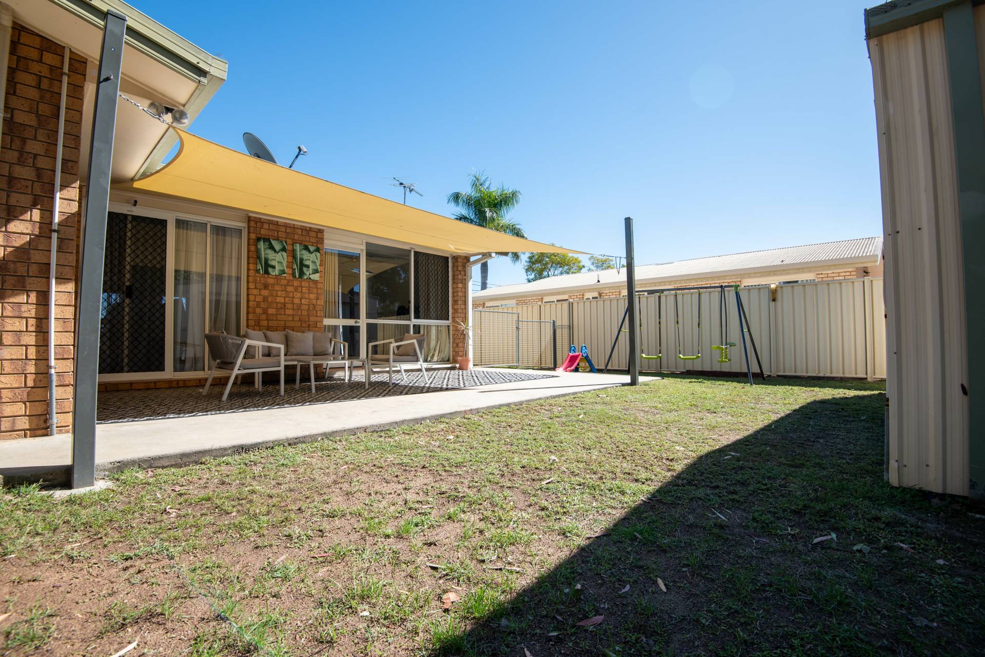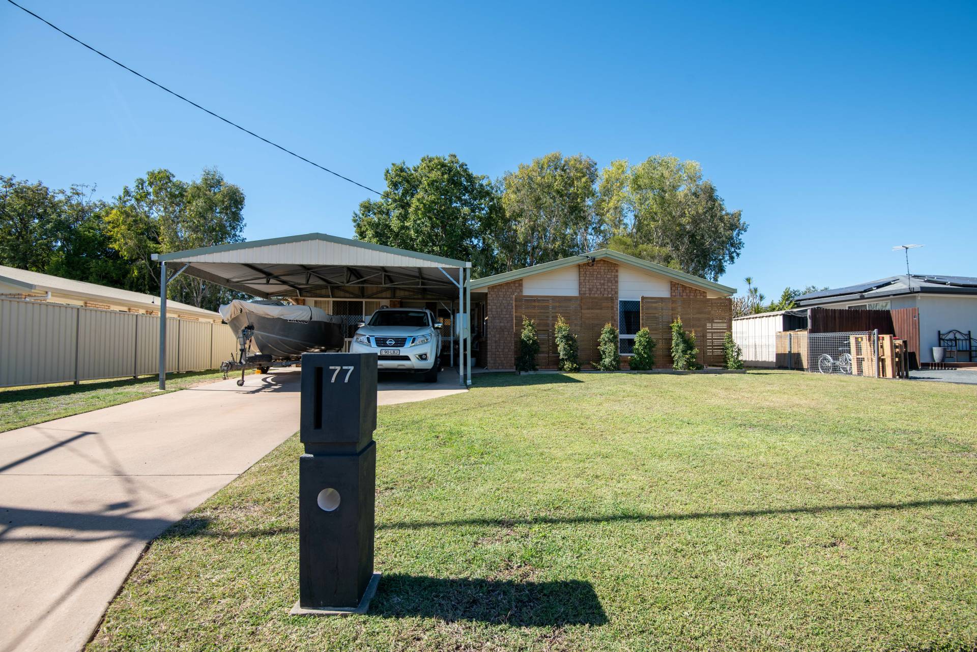 Situated on the north side of town, 77 Staal Crescent enjoys a peaceful neighbourhood and is blissfully flood-free. You do not want to delay in securing, this lowset brick veneer family home that is ready for you to move straight on in or alternatively why not add it to your investment portfolio. The property features four good sized bedrooms, with three rooms having built in robes. Newly renovated bathroom, spacious laundry with easy access to the clothesline. There is plenty of living space with a large separate air-conditioned lounge adjacent to a generous dining/living area and the modern kitchen. To the exterior is a double carport for the family vehicles, side access to the 6m x 6m powered shed. Situated in a family friendly neighbourhood, with fully fenced yard with access to the park at the rear of the property.
