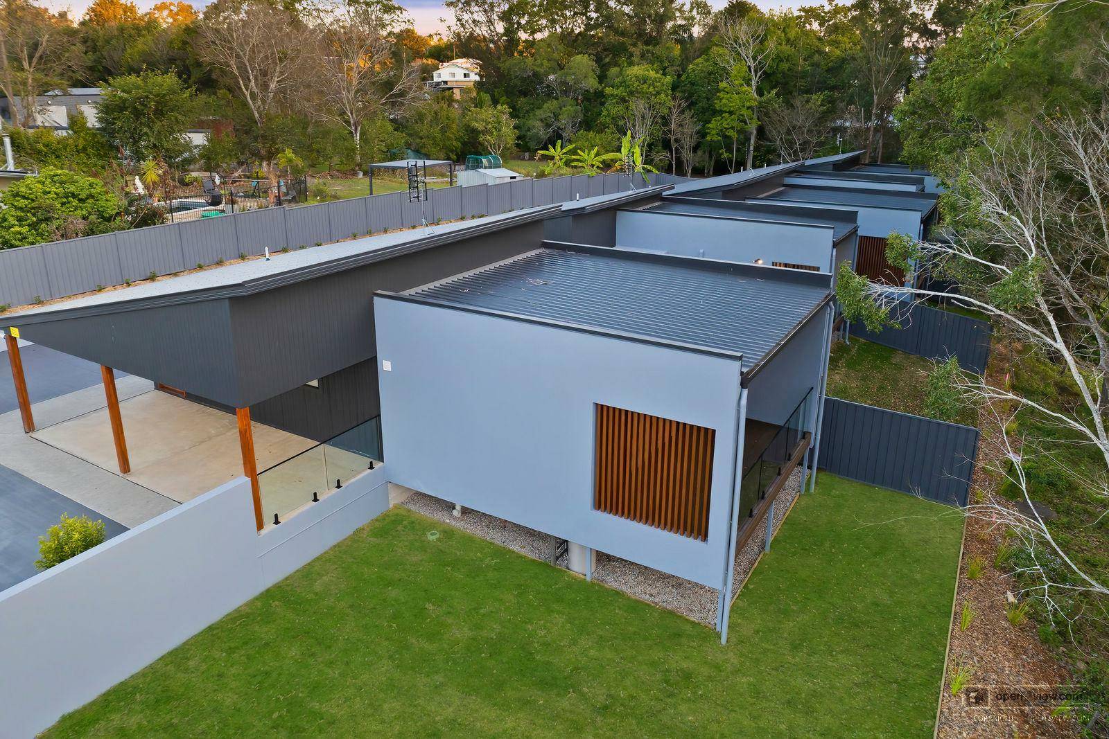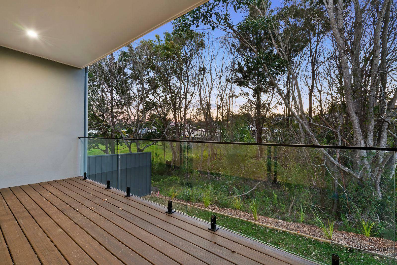 Designer townhouse for rent with elevated outdoor deck overlooking private backdrop and creek. The townhouse is designed for maximum privacy with minimum maintenance. Includes brand new appliances as follows. Dishwasher, Free standing fridge, wall mounted plasma TV, washing machine and electric heat pump dryer. Fans in bedrooms, plus air conditioning in living area. The property consists of only 1 carpark on site which is undercover in the attached carport so couples with 2 cars will need to park one vehicle on the road and comply with the Community Management statement by laws (a copy of which shall be provided with the lease).