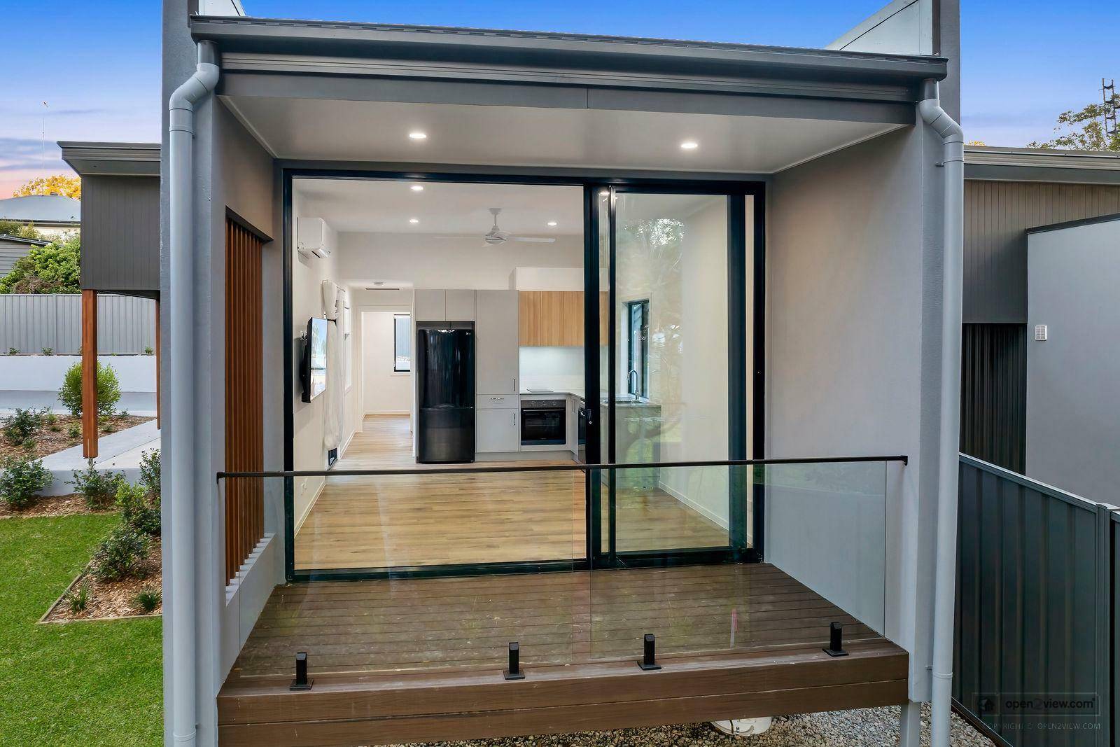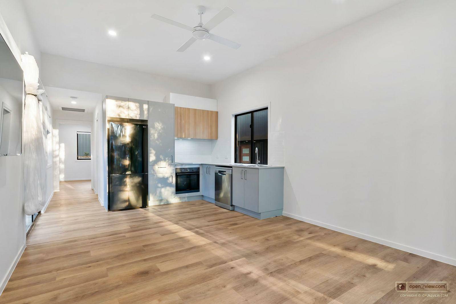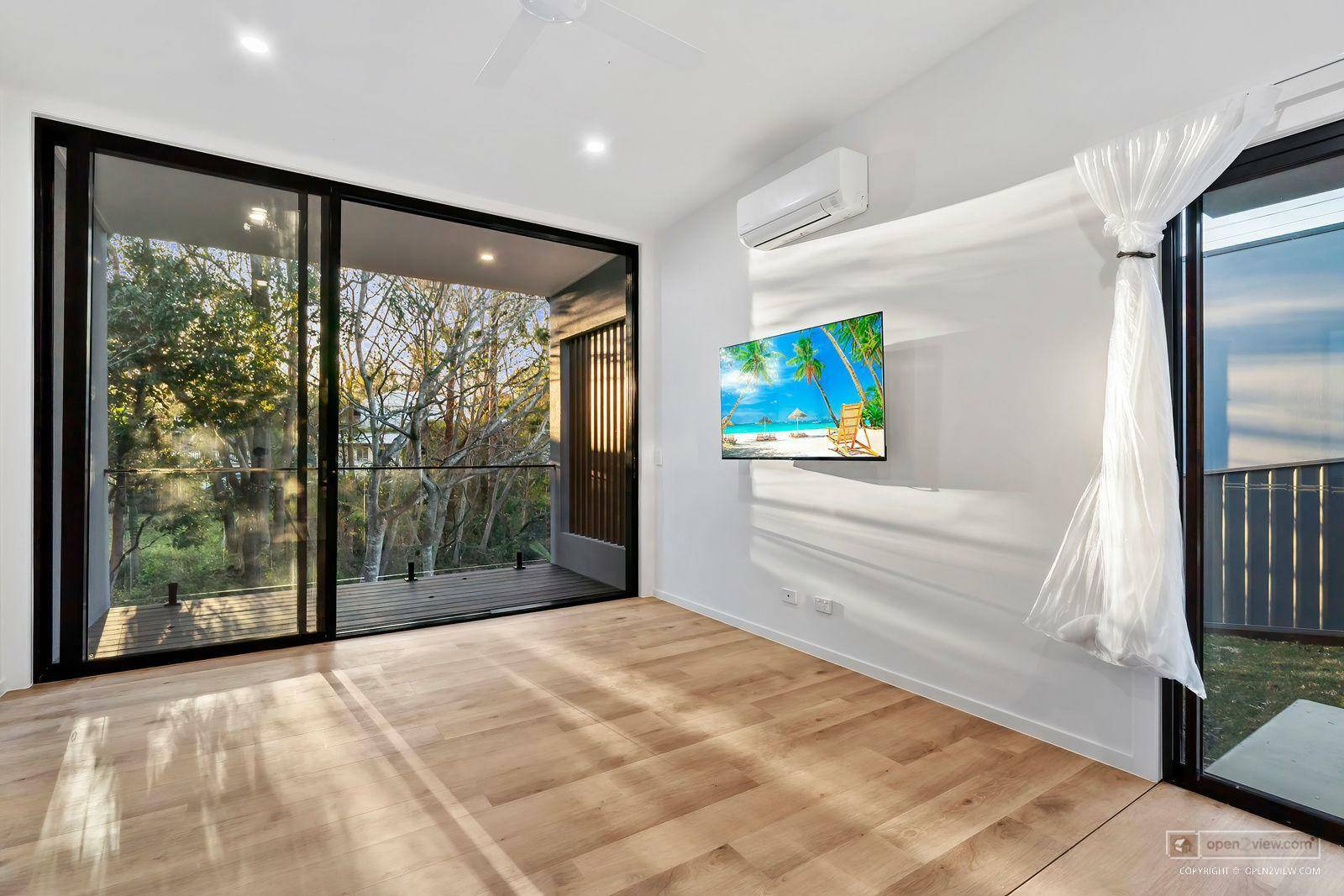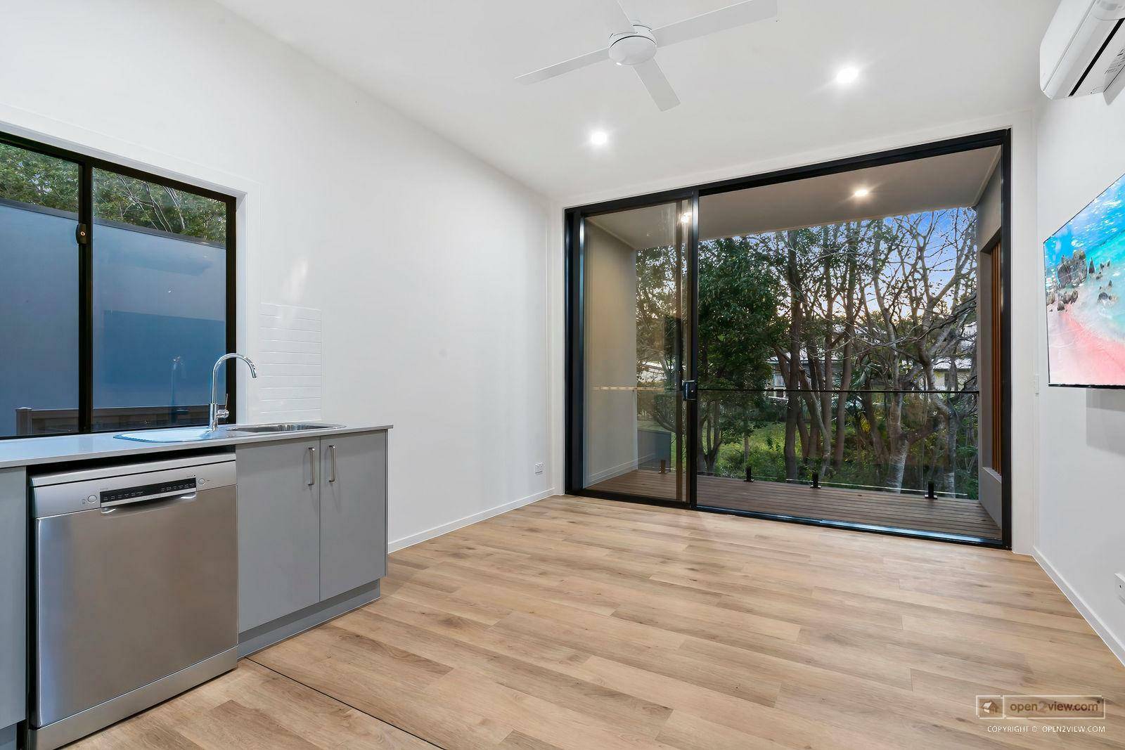Designer townhouse for rent with elevated outdoor deck overlooking private backdrop and creek. The townhouse is designed for maximum privacy with minimum maintenance. Includes brand new appliances as follows. Dishwasher, Free standing fridge, wall mounted plasma TV, washing machine and electric heat pump dryer. Fans in bedrooms, plus air conditioning in living area. The property consists of only 1 carpark on site which is undercover in the attached carport so couples with 2 cars will need to park one vehicle on the road and comply with the Community Management statement by laws (a copy of which shall be provided with the lease).