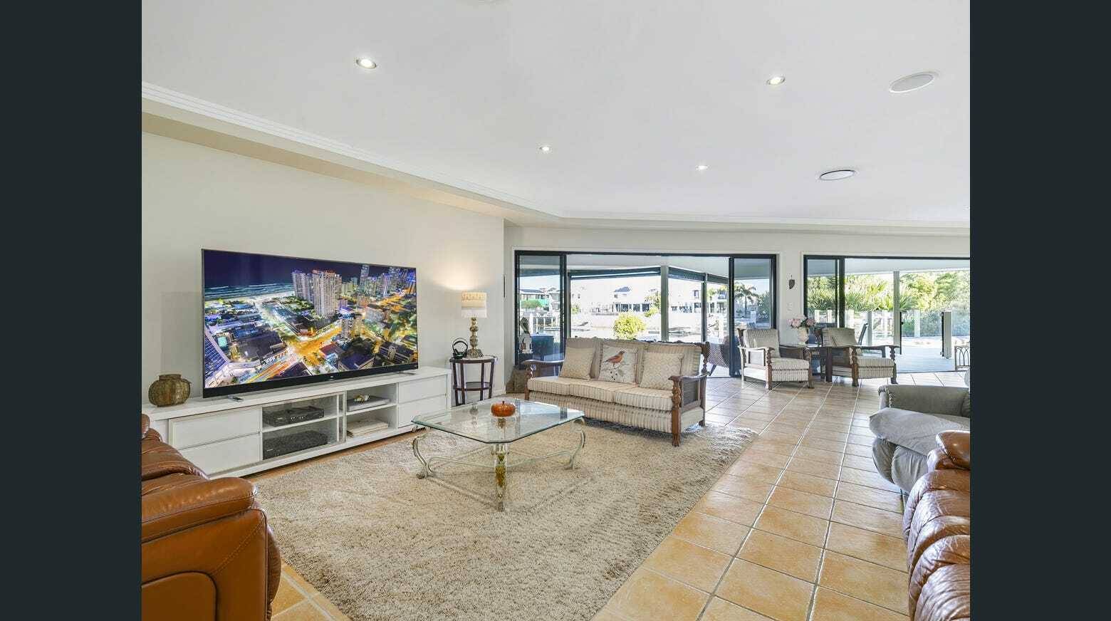 The home is impressive from the portico entry with large timber decorative doors leading into the foyer and living rooms. Upon entry your eyes are drawn to the outside water views through the large sliding glass doors when open bring the outside in and fill the area with warmth and natural light.