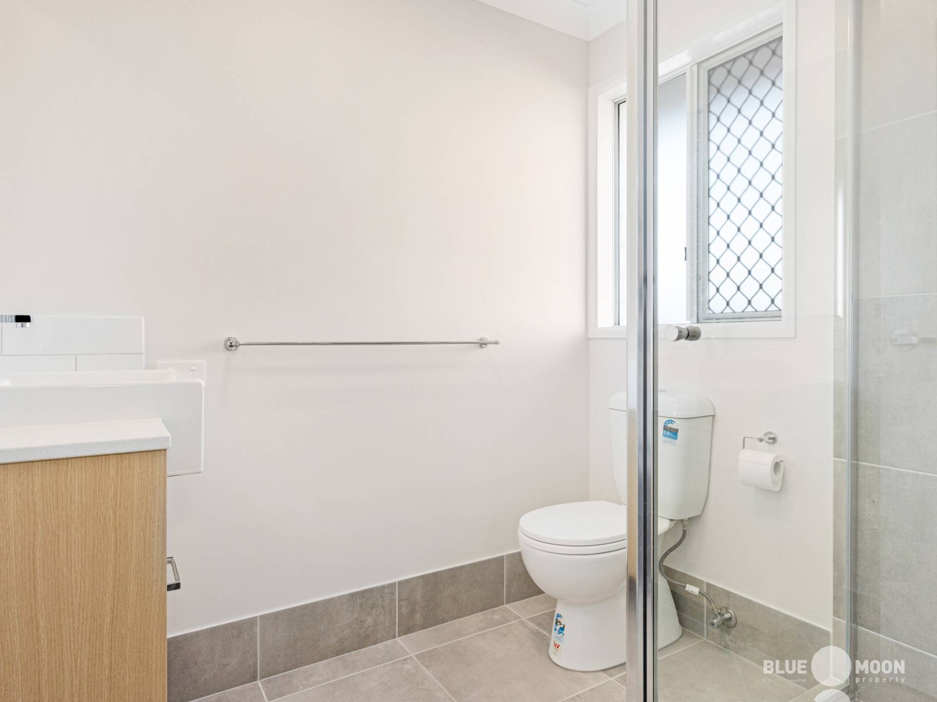 The air-conditioned master suite boasts a spacious layout with walk in robe, ceiling fan and ensuite.