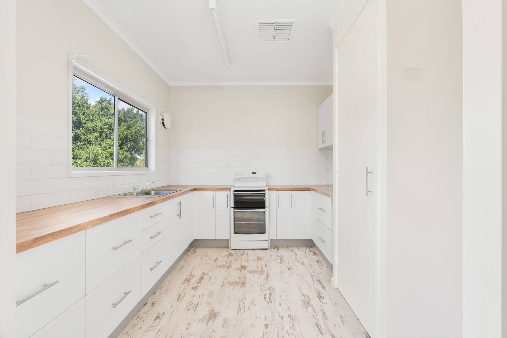 - Modern kitchen with beautiful timber bench tops, electric stove, and oven.