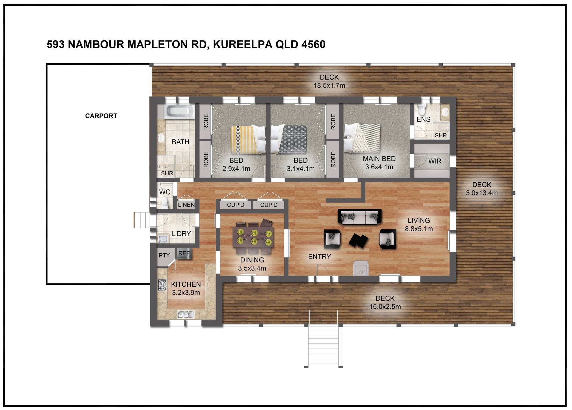 Nestled within a private, secluded canopy of majestic established hardwood trees and rich wildlife, this property in Kureelpa offers a unique living experience. Kureelpa is truly a special place where nature meets convenience, with schools, shopping centers, and hospitals all within a 10-minute drive. The 3-bedroom family home on this property provides everything you need, featuring wide verandahs, timber flooring throughout, and a cozy fireplace for those chilly winter nights.