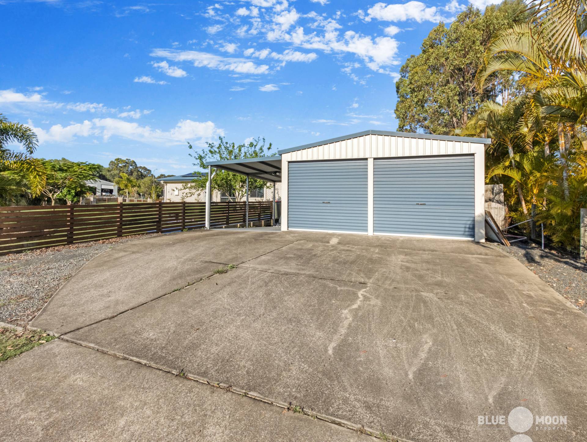 • 2 Car Shed 6m x 6m (Powered) with Roller Doors and attached 6m x 3m Carport