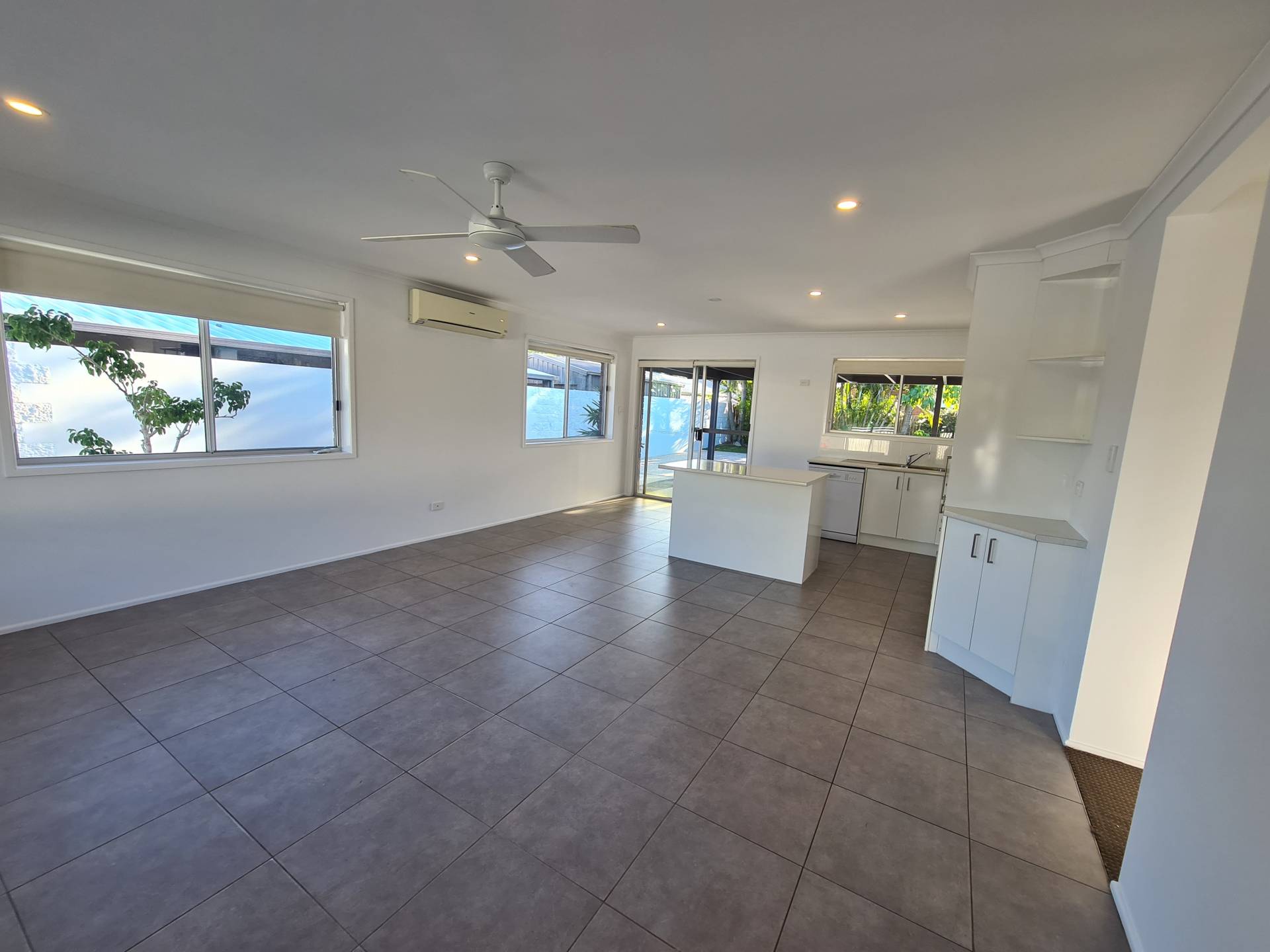 Open plan living with air conditioning and a well appointed kitchen, 3 bedrooms with ceiling fans, 1 bathroom with separate toilet.