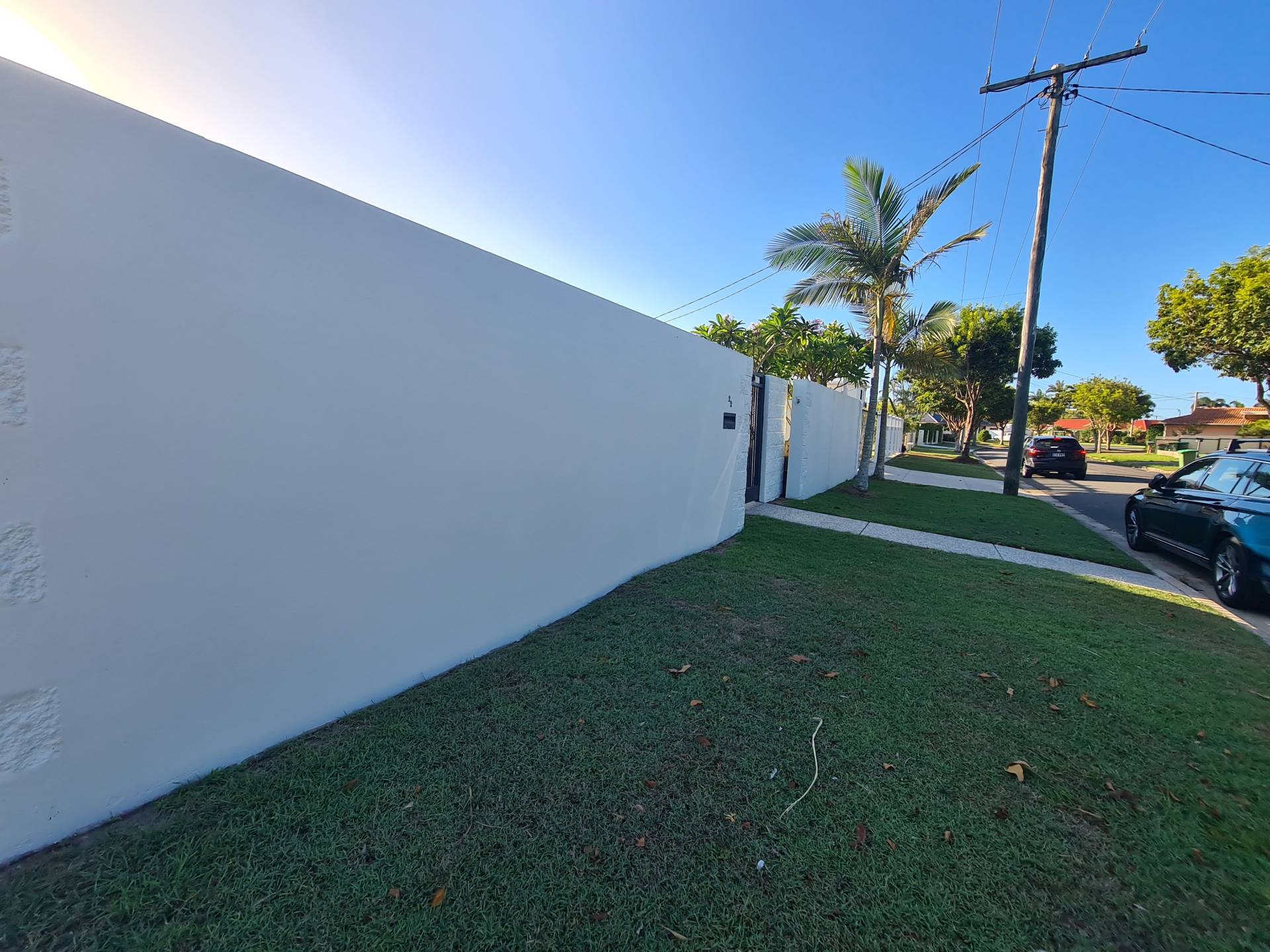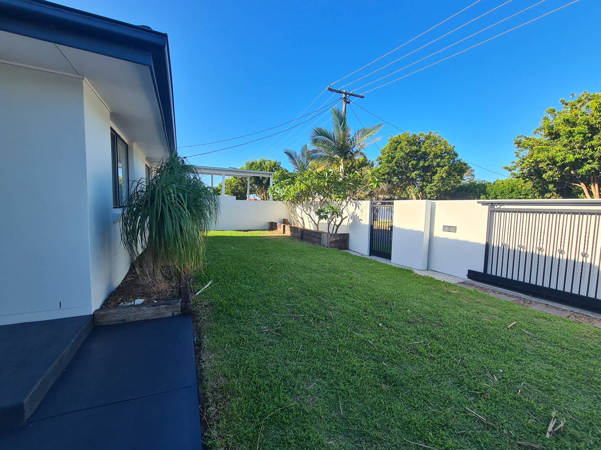 Tidy easy care yard, fully fenced with an  electric sliding gate and front rendered wall for great security.