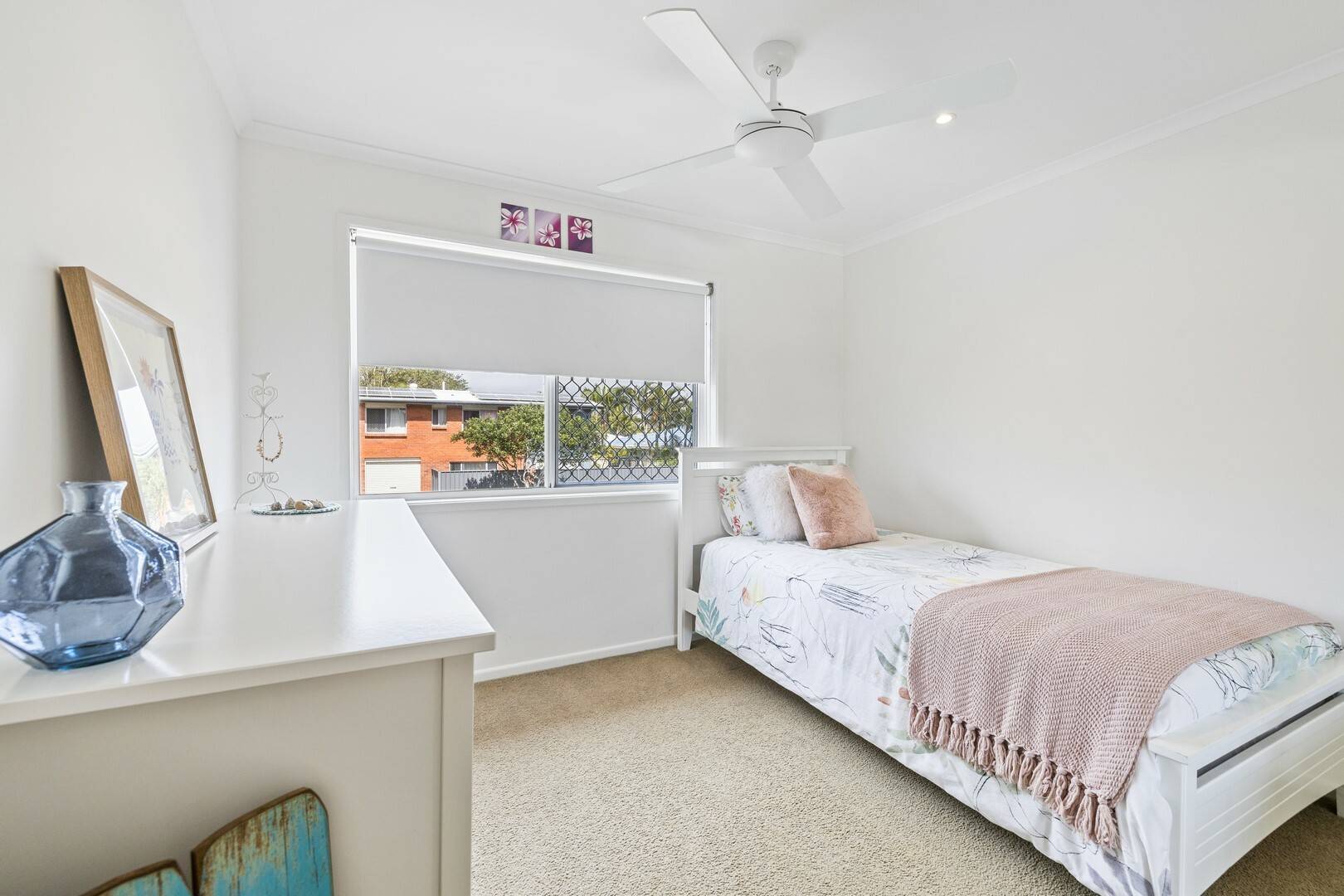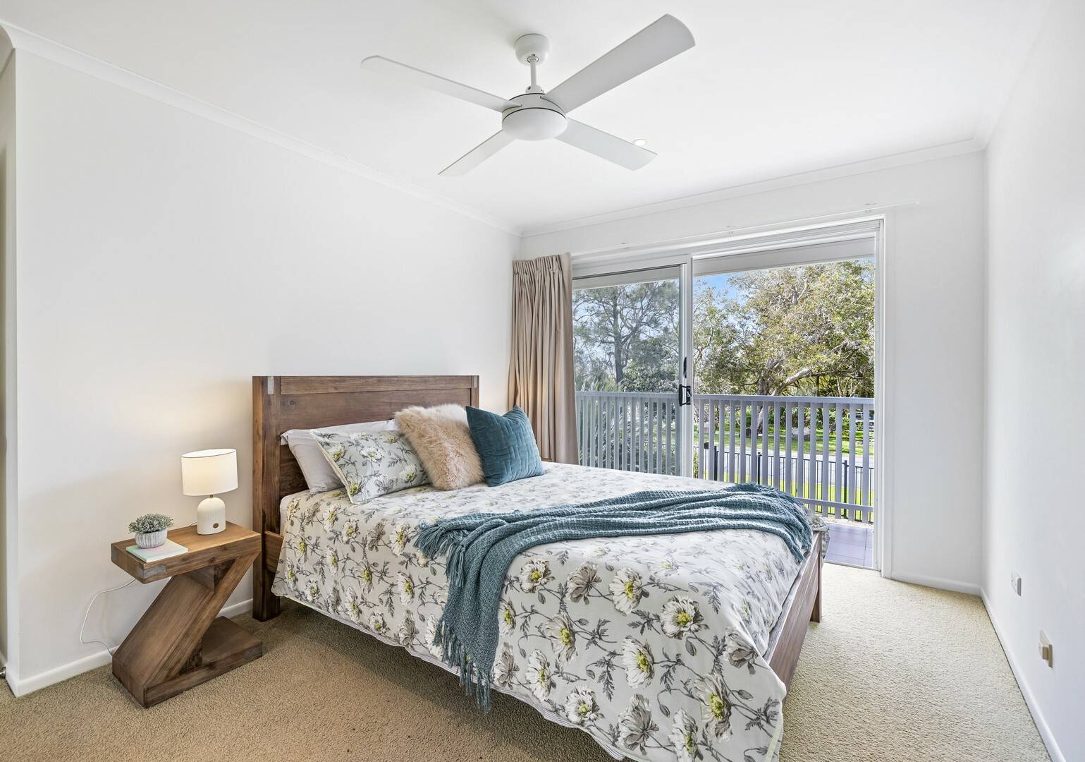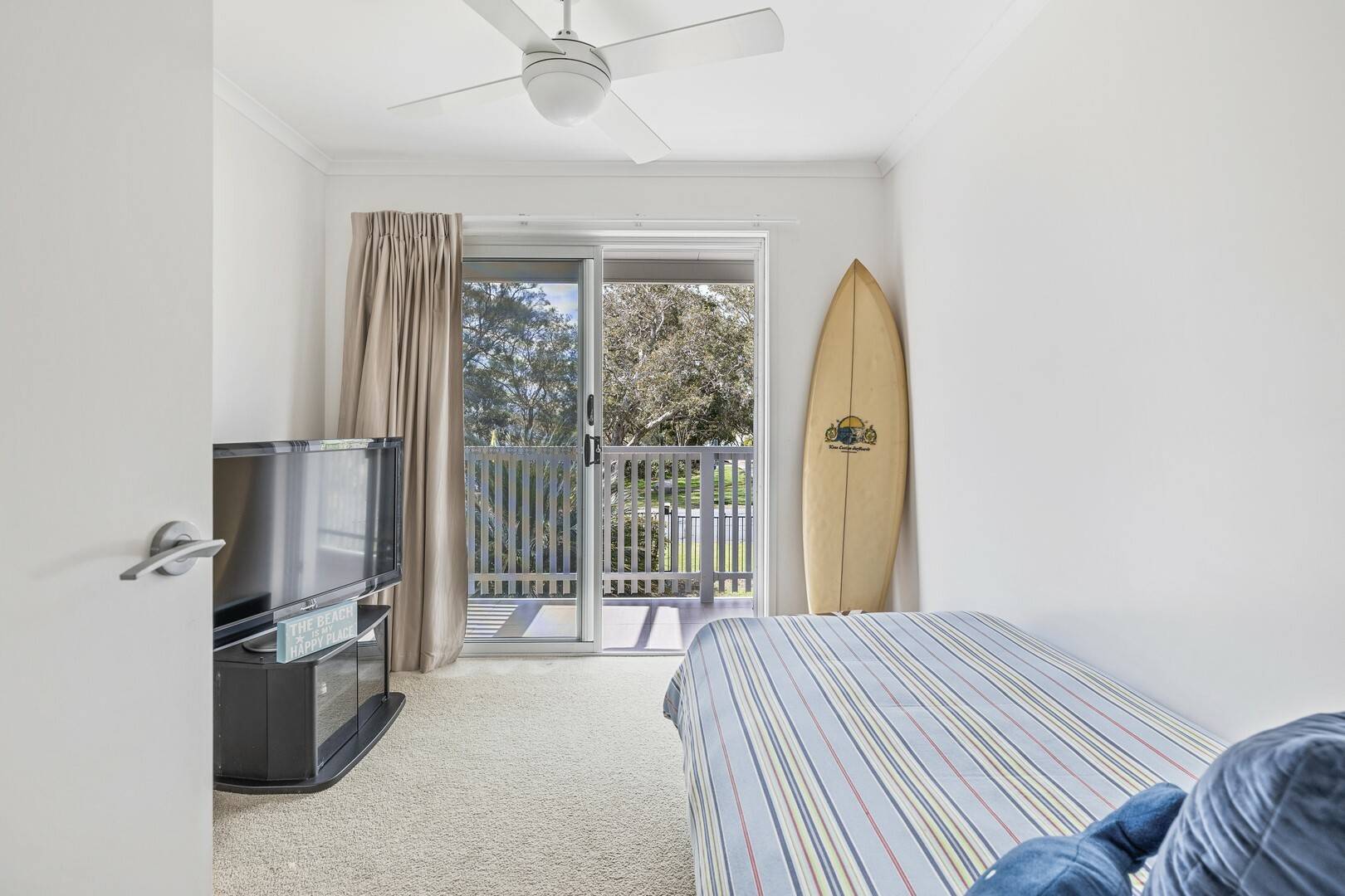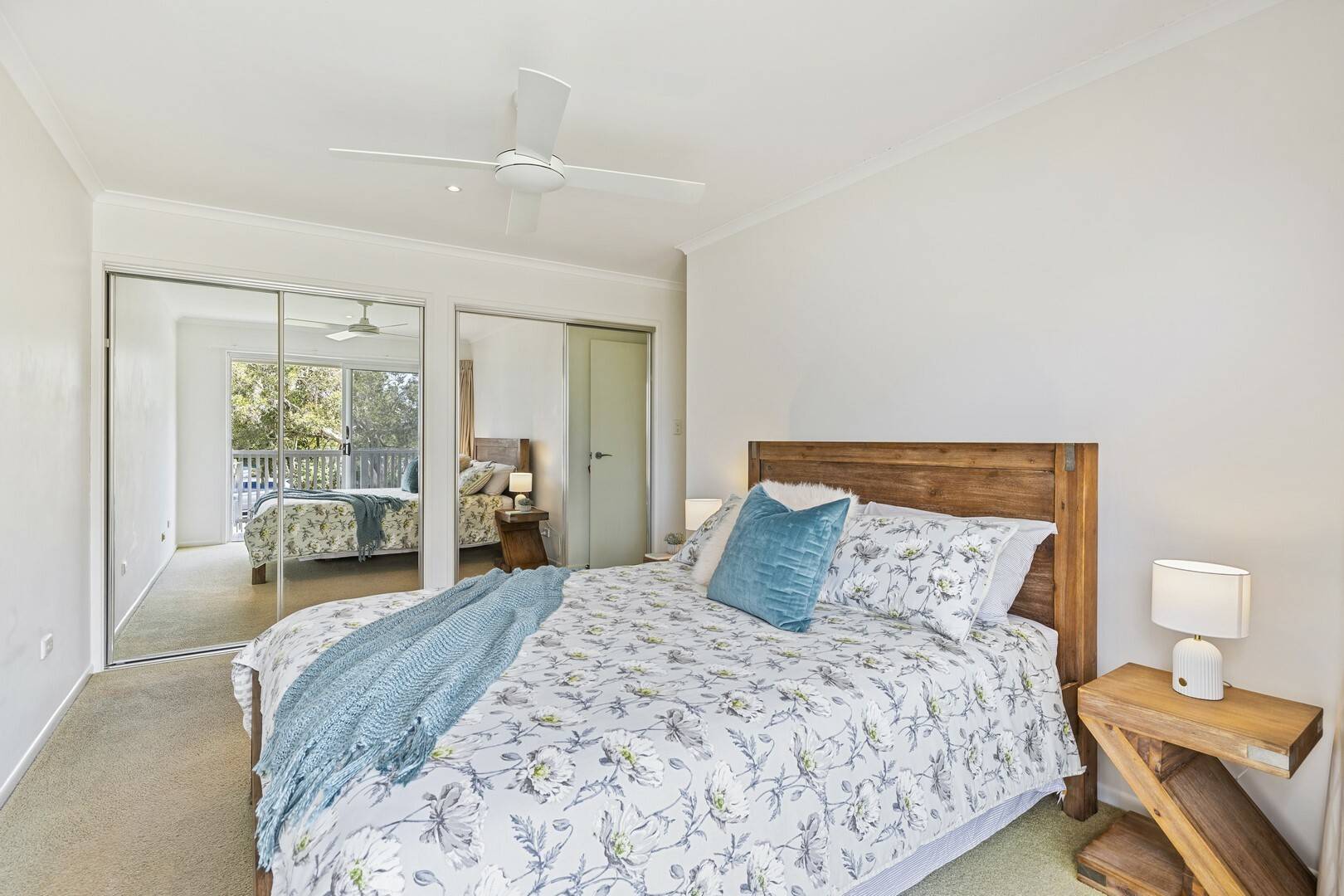 - All three bedrooms have with built-in robes and ceiling fans. The master bedroom and second bedroom share a balcony that offers lovely water views.