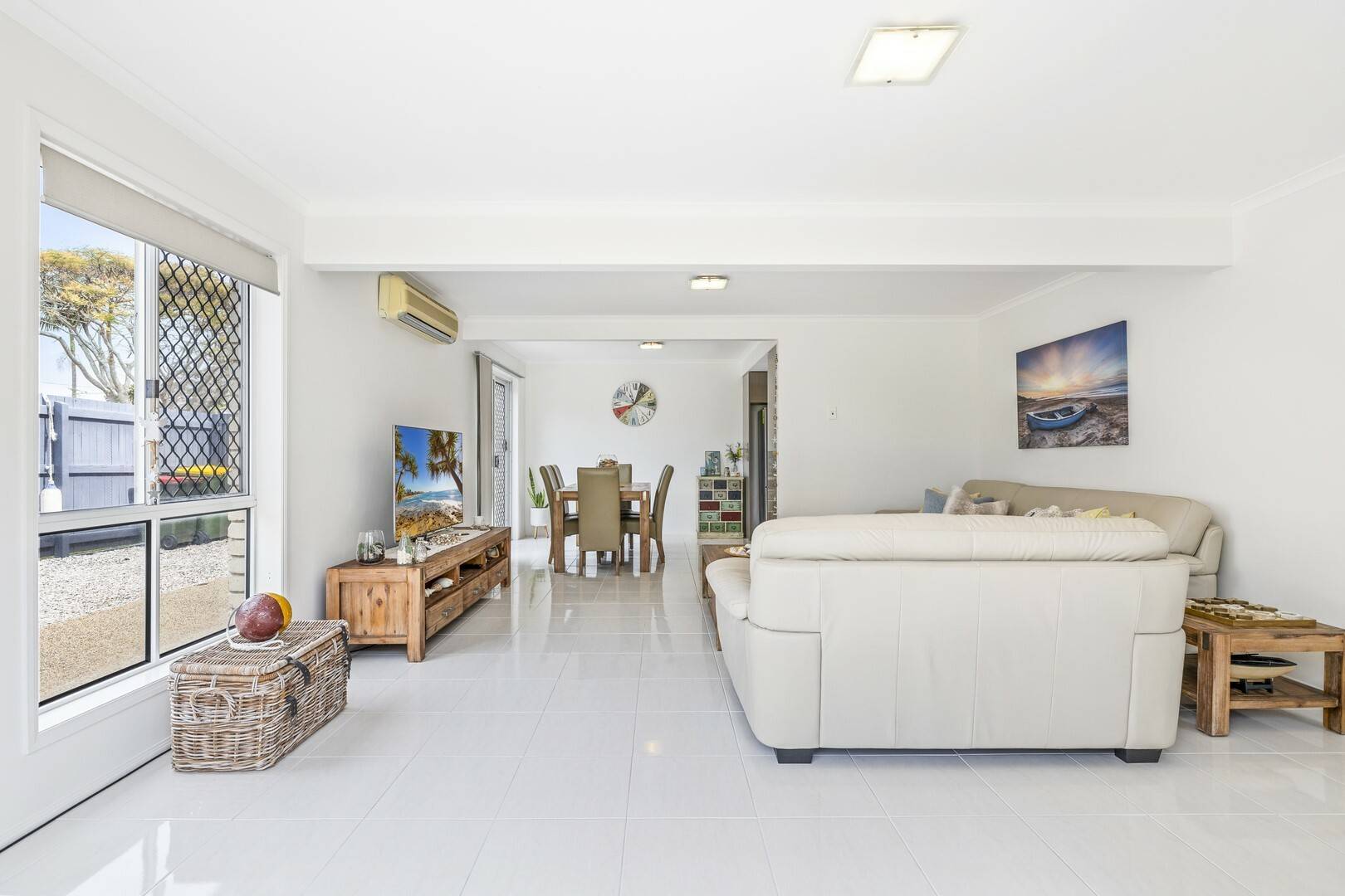 The home has been beautifully renovated with a classic beach feel, is light and bright and decorated in a neutral colour scheme.