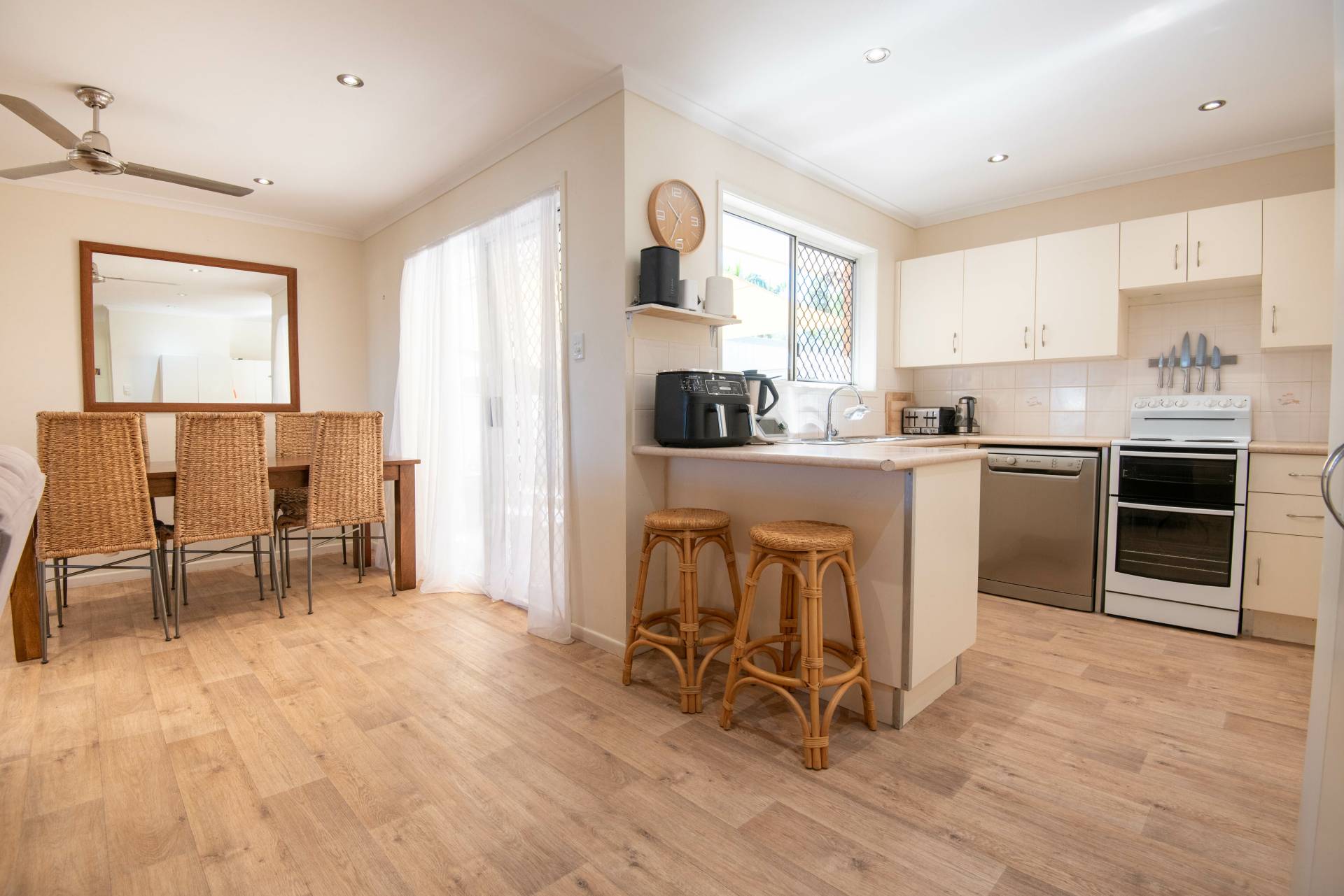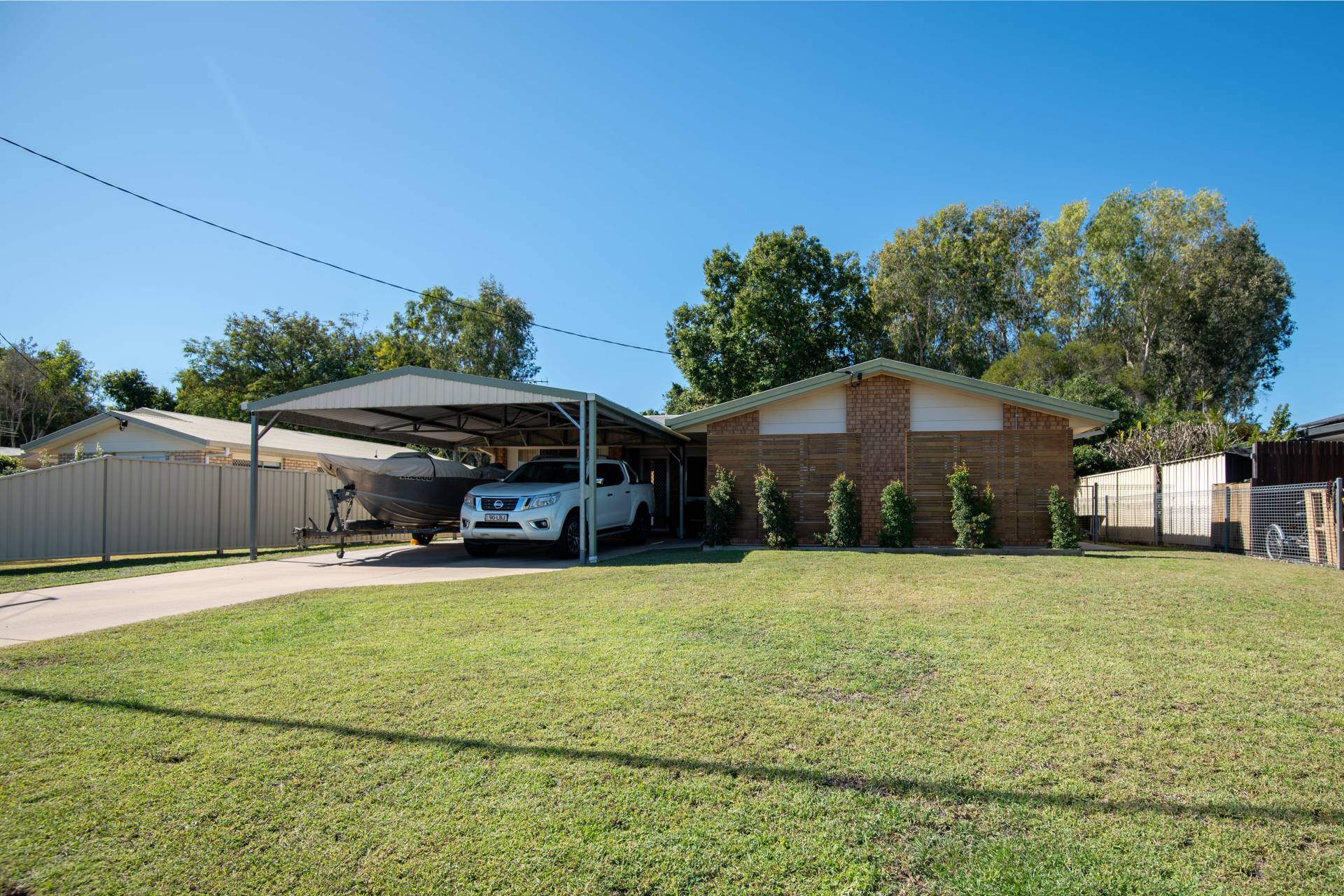 Situated on the north side of town, 77 Staal Crescent enjoys a peaceful neighbourhood and is blissfully flood-free. You do not want to delay in securing, this lowset brick veneer family home that is ready for you to move straight on in. The property features four good sized bedrooms, with three rooms having built in robes. Newly renovated bathroom, spacious laundry with easy access to the clothesline. There is plenty of living space with a large separate air-conditioned lounge adjacent to a generous dining/living area and the modern kitchen. To the exterior is a double carport for the family vehicles, side access to the 6m x 6m powered shed. Situated in a family friendly neighbourhood, with fully fenced yard with access to the park at the rear of the property.
