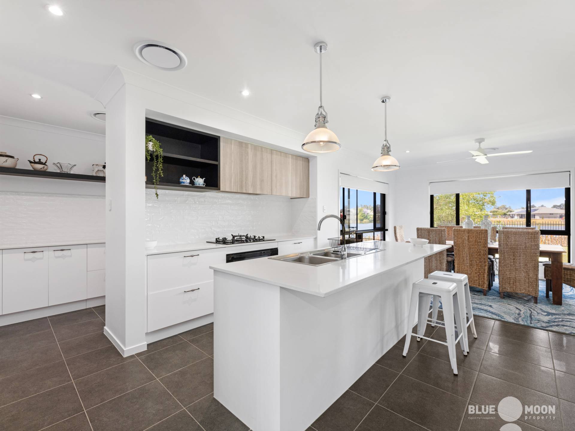 The heart of this haven lies within its stunning air-conditioned designer kitchen, where your culinary skills can take centre stage. Boasting stone benchtops, gas cooktop, custom cabinetry, island benchtop and dishwasher, the kitchen has been meticulously arranged to elevate the joy of meal preparation, flawlessly accompanied by the convenience of a separate butlers pantry.