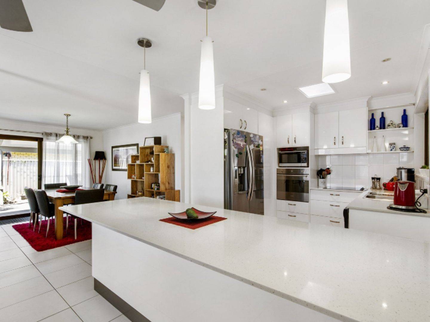 > Kitchen features stone benchtops, stainless steel appliances