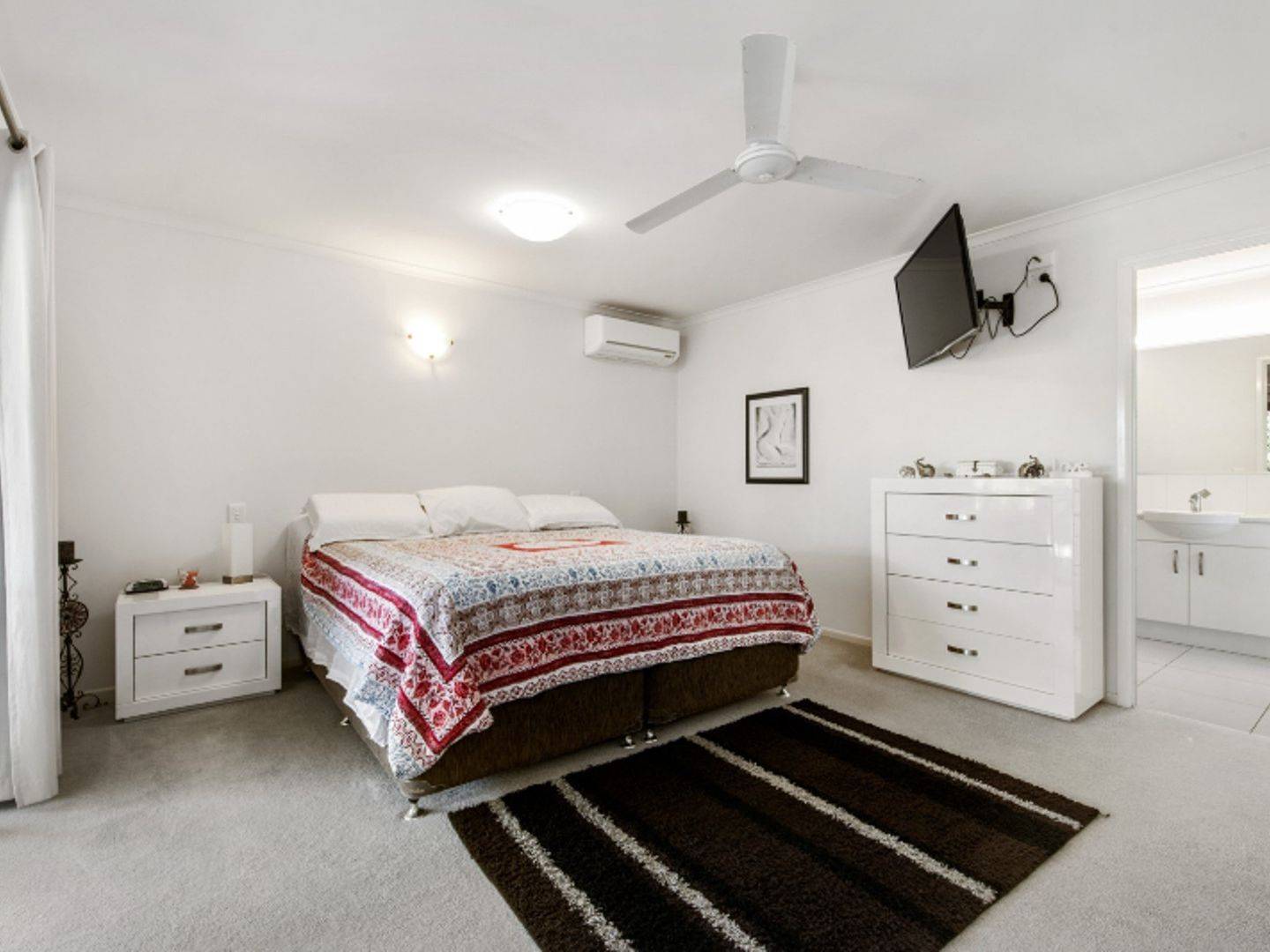 > Master bedroom features air-conditioning, ensuite bathroom and walk in wardrobe