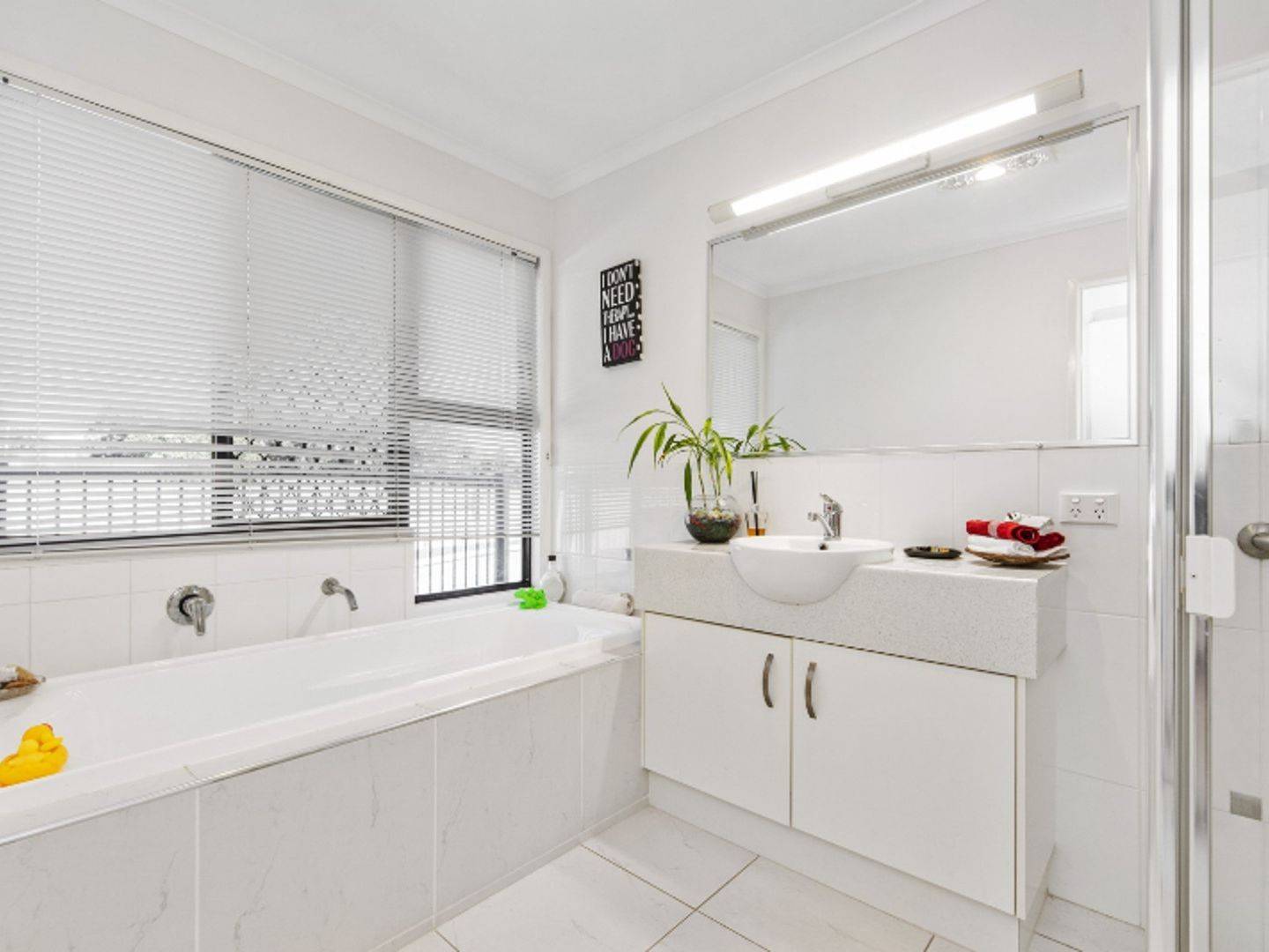 > Bright, well presented main bathroom with  bath and shower