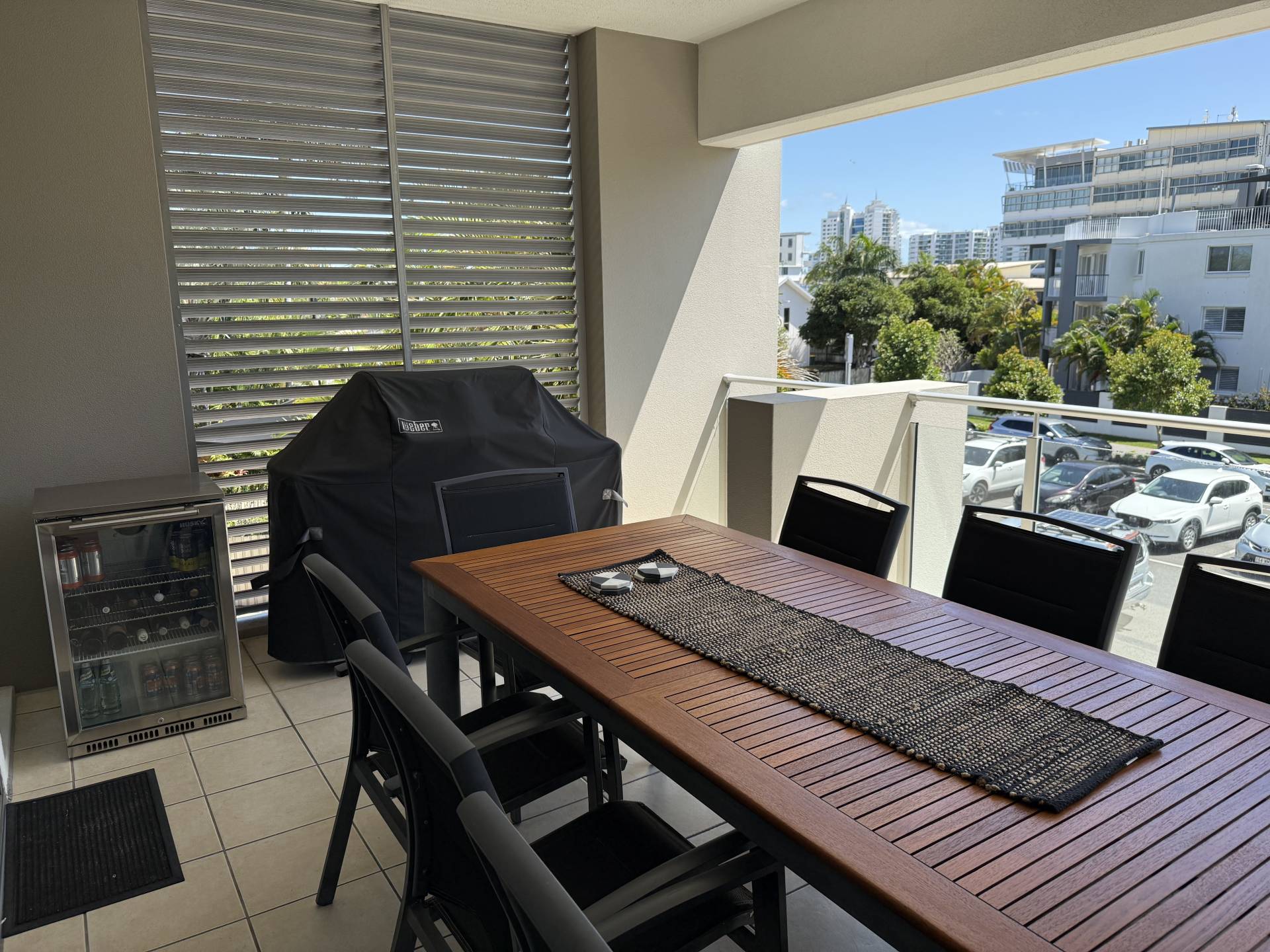 If outside entertainment is your idea of a good time, we have you well covered. The spacious outdoor balcony is equipped with a BBQ, mini drinks fridge and 8 seater table and chairs, perfect