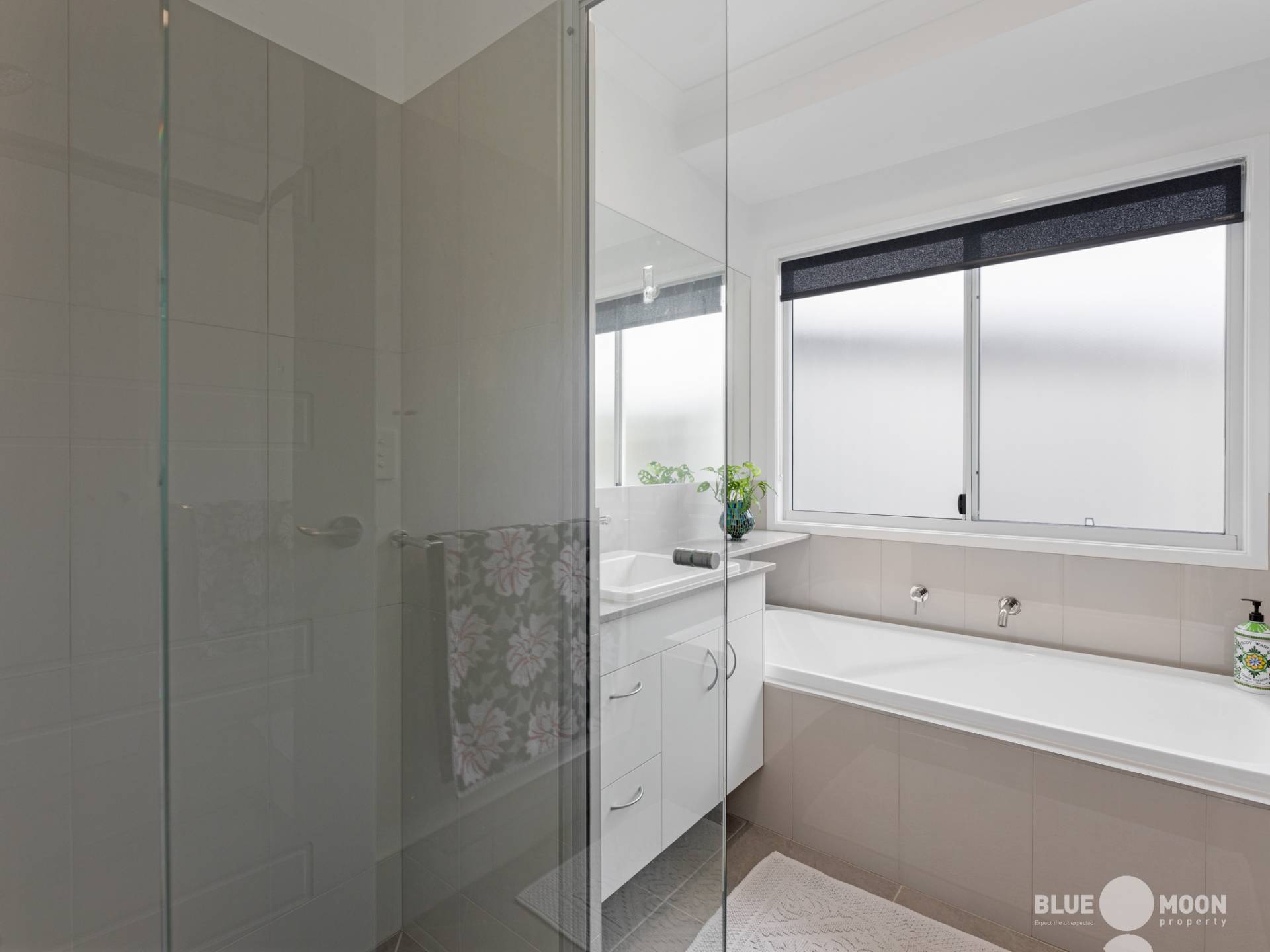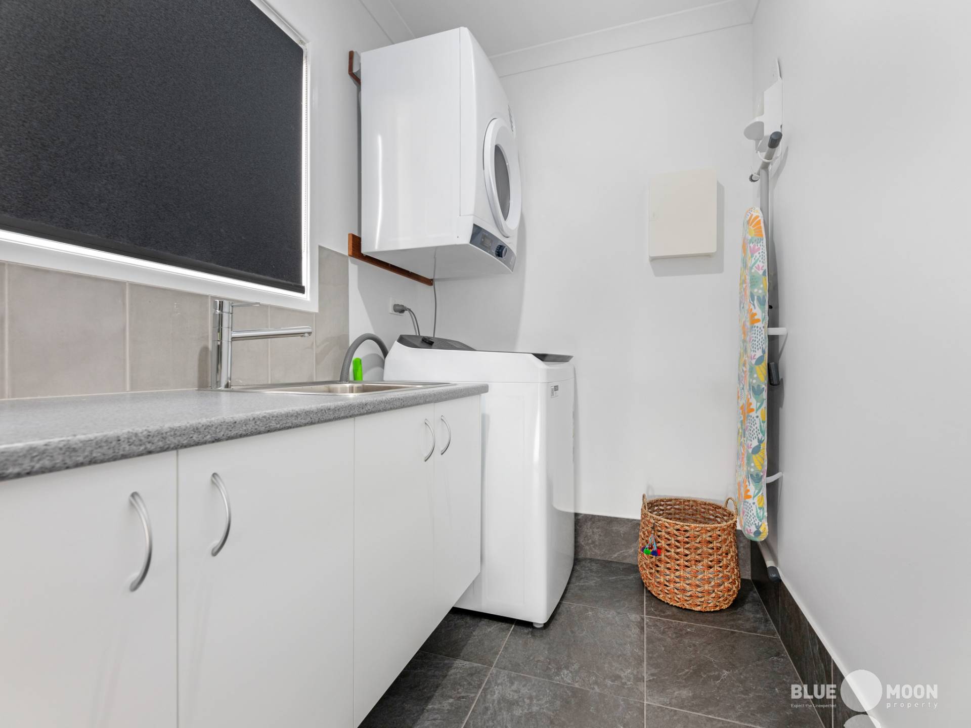 The heart of this haven lies within its stunning designer kitchen, where your culinary skills can take centre stage. Showcasing stone benchtops, crisp white cabinetry, eye-catching splashback, stainless steel appliances, electric cooktop, dishwasher and an abundance of bench and cupboard space the joy of meal preparation is elevated to a new level.
