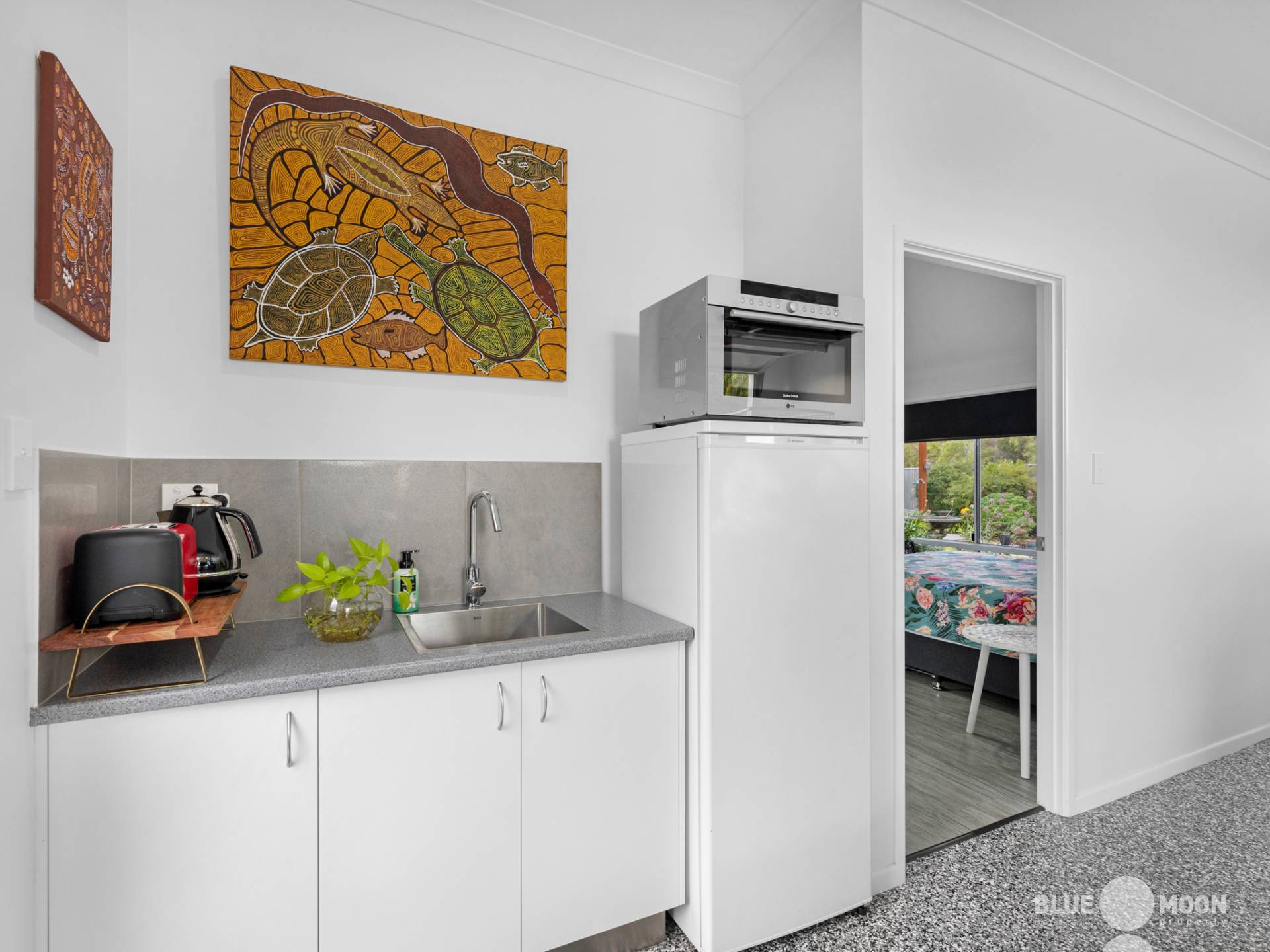 A design bonus of this property is the self-contained 1-bedroom granny flat. With a kitchenette and bathroom with walk in shower, this space offers the perfect retreat for visiting family and friends or could provide a haven for elderly parents to live independently while being close by.