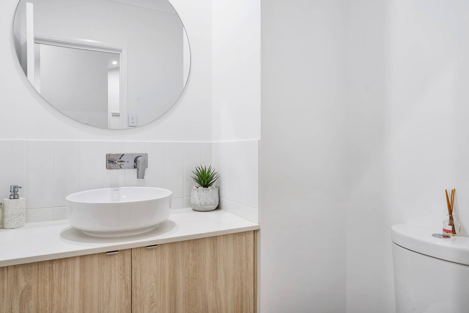 Separate powder room for easy guest use