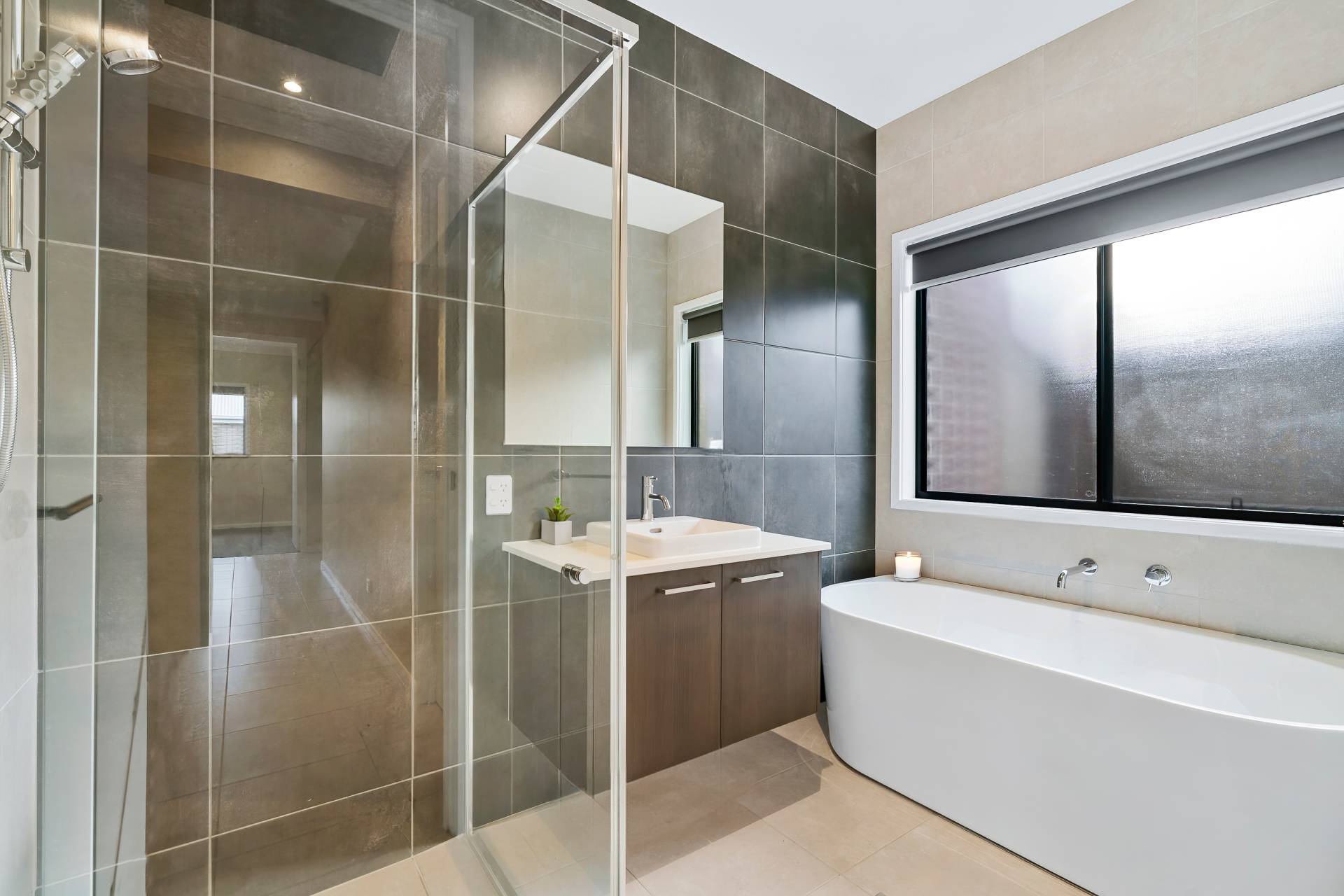 • Expansive main bathroom featuring floor to ceiling tiles & a freestanding bath