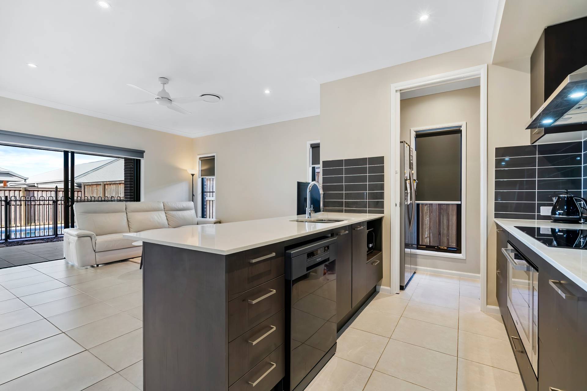 • Chef’s kitchen with stone benchtops, walk-in pantry, 900mm oven and cooktop, and ample storage