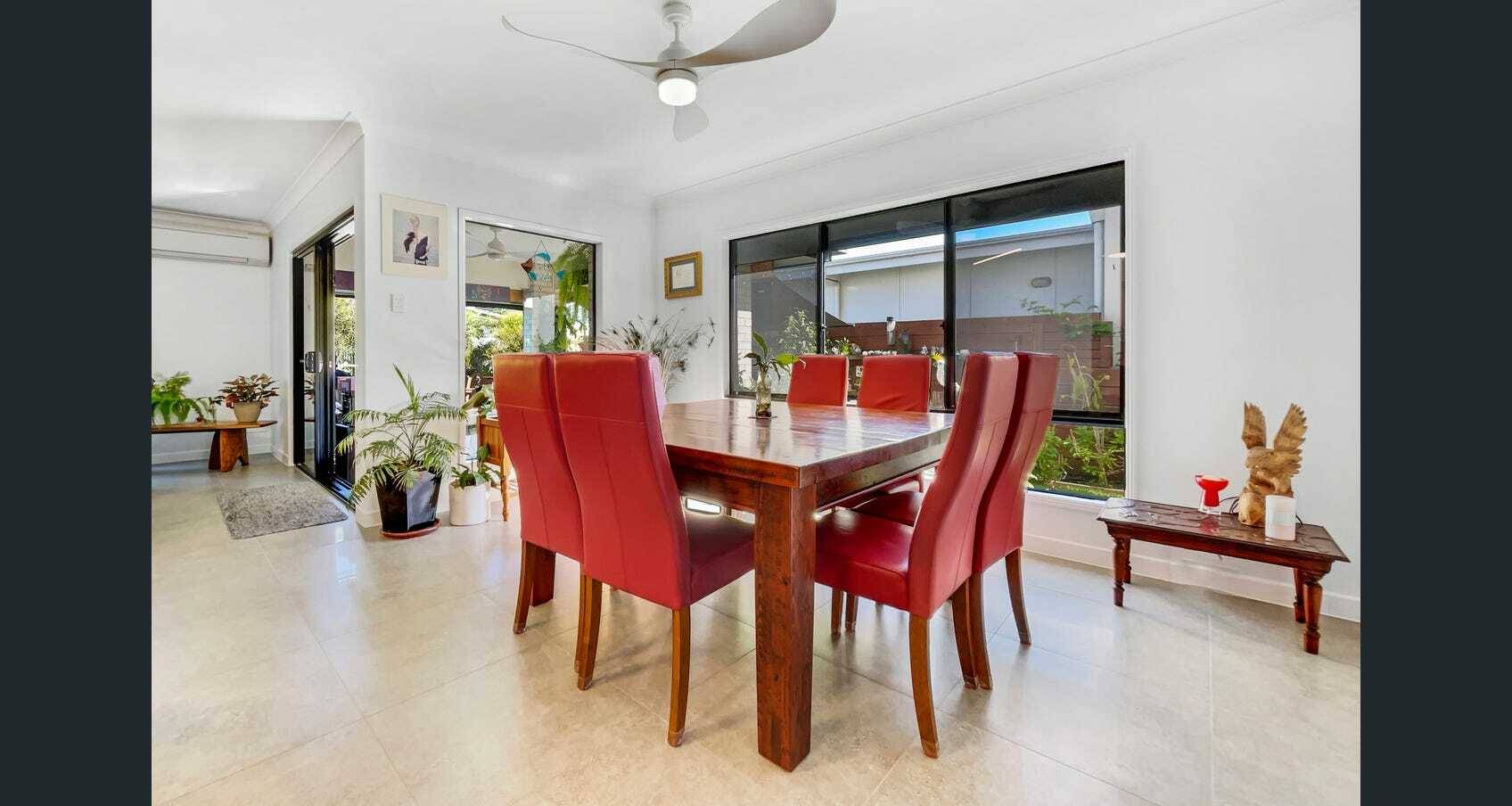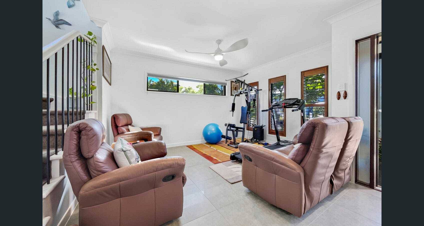 Set in the Boardwalk Estate of Mt Coolum, this 2 story home is large and spacious. With multiple living areas both upstairs and downstairs, including a large Media room that could be used as a 4th bedroom. The large Main bedroom has a private balcony to catch the see breezes and hear the gentle sounds of the waves. Open plan living leading out to a garden lined outdoor patio.