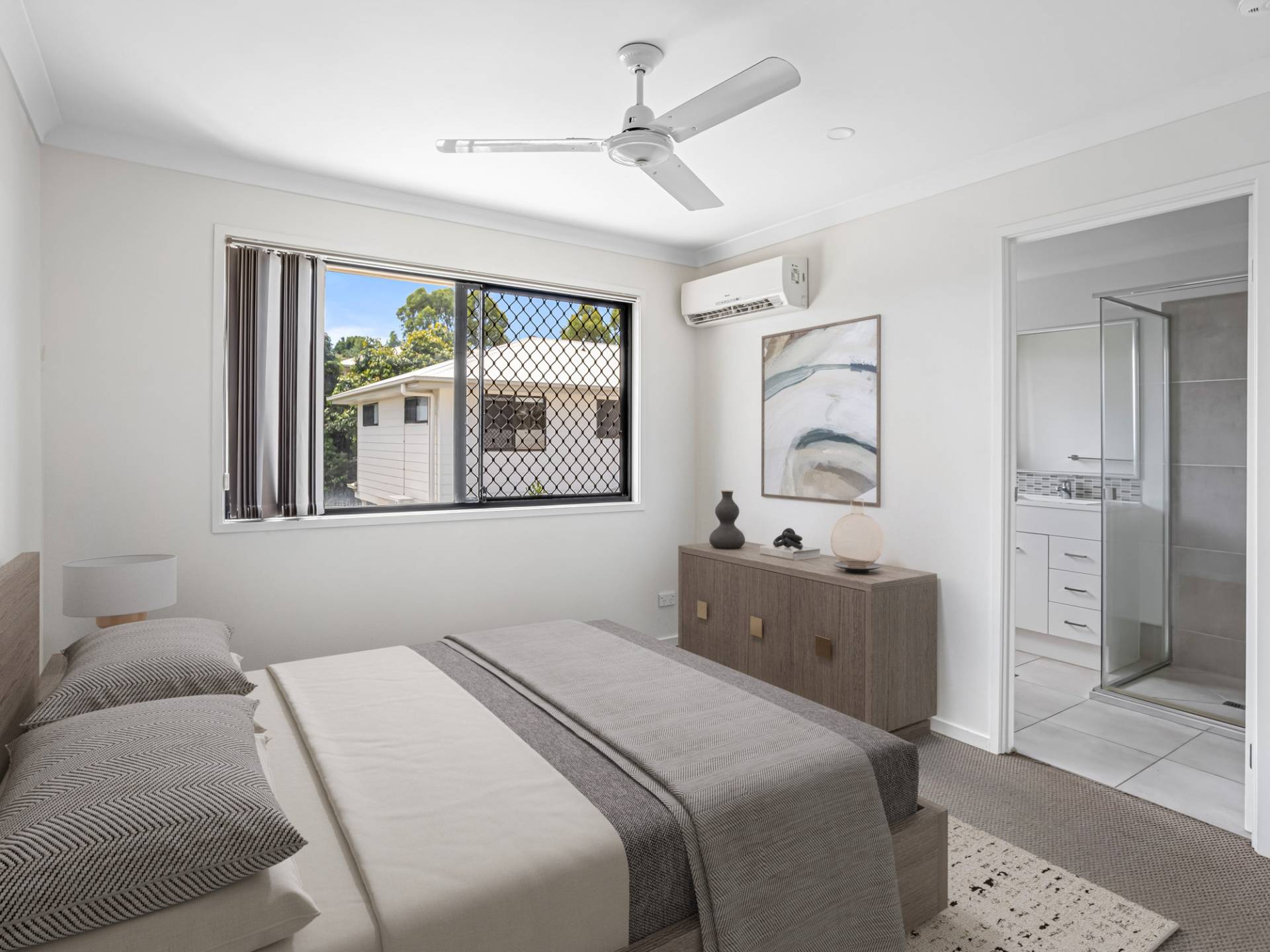 The three well-appointed bedrooms are perfect for families, guests, or setting up a home office. The two bathrooms ensure convenience and privacy for all residents.